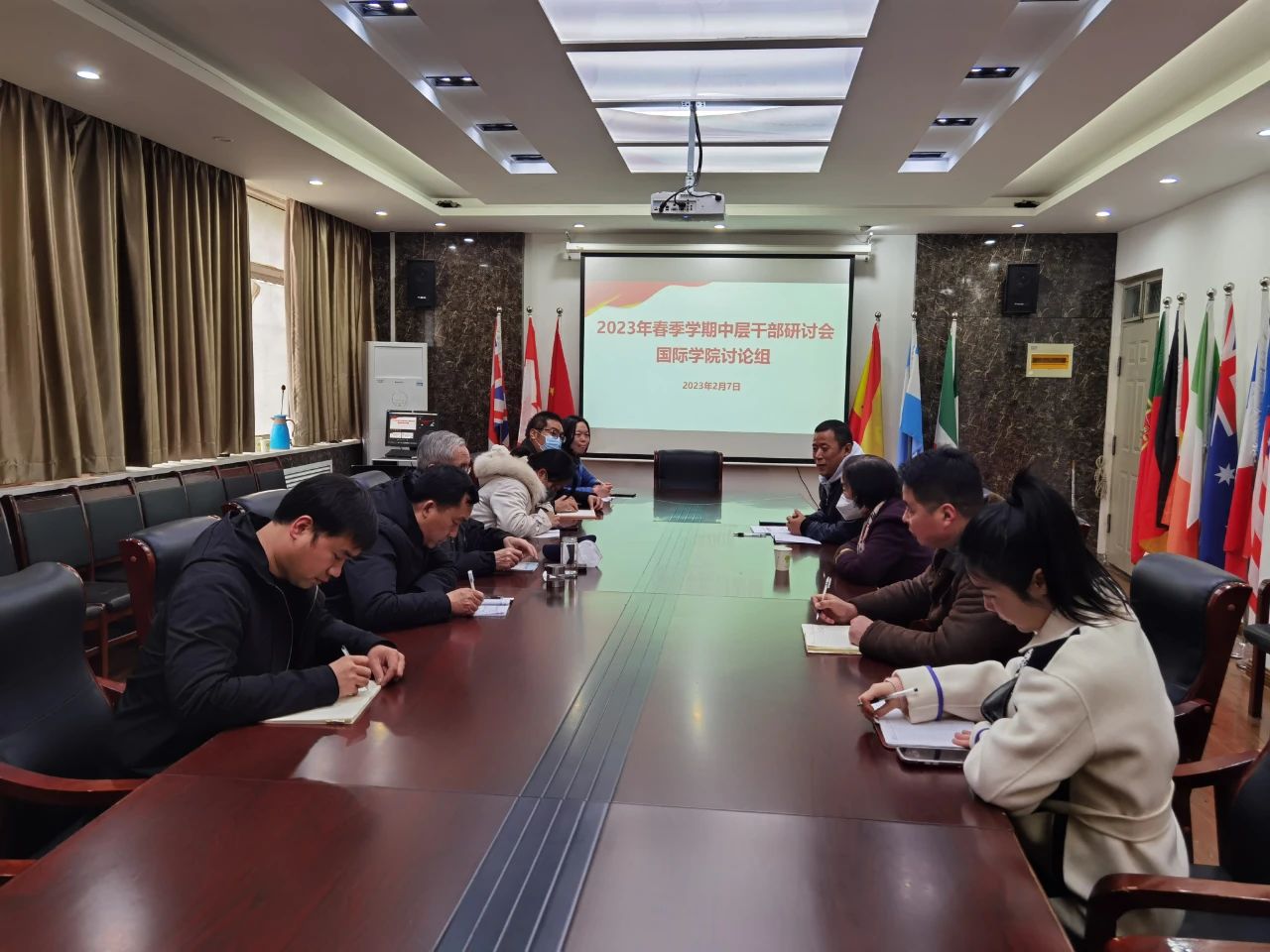 2月7日下午,2023年春季学期中层干部研讨会beats365唯一官网讨论组在教学楼203会议室展开研讨,校领导胡大白、beats365唯一官网分党委书记刘景涛,常务副经理武京玉、分党委副书记郭建伟以及公司部分中层干部参会。