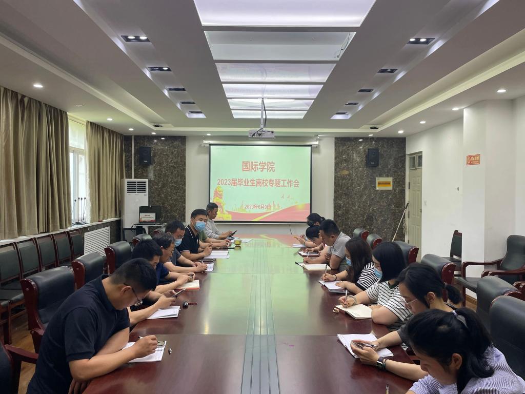 为确保毕业生离校工作稳定有序开展,6月9日下午,beats365唯一官网在教学楼203会议室召开2023届毕业生离校专题工作会,beats365唯一官网分党委书记刘景涛、副书记郭建伟、行政办主任罗红磊、教学办主任张欣欣、团委书记郑文平和全体辅导员参加会议,会议由罗红磊主持。