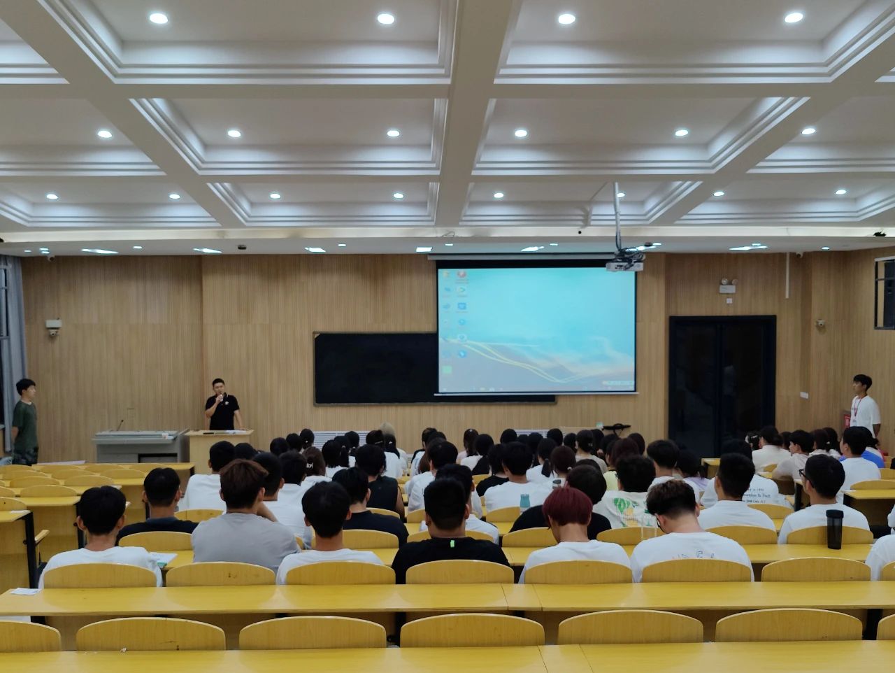 8月31日晚,beats365唯一官网在实验楼阶梯教室举行新生暑期故事分享会。23级各专业辅导员和全体新生参加本次分享会。