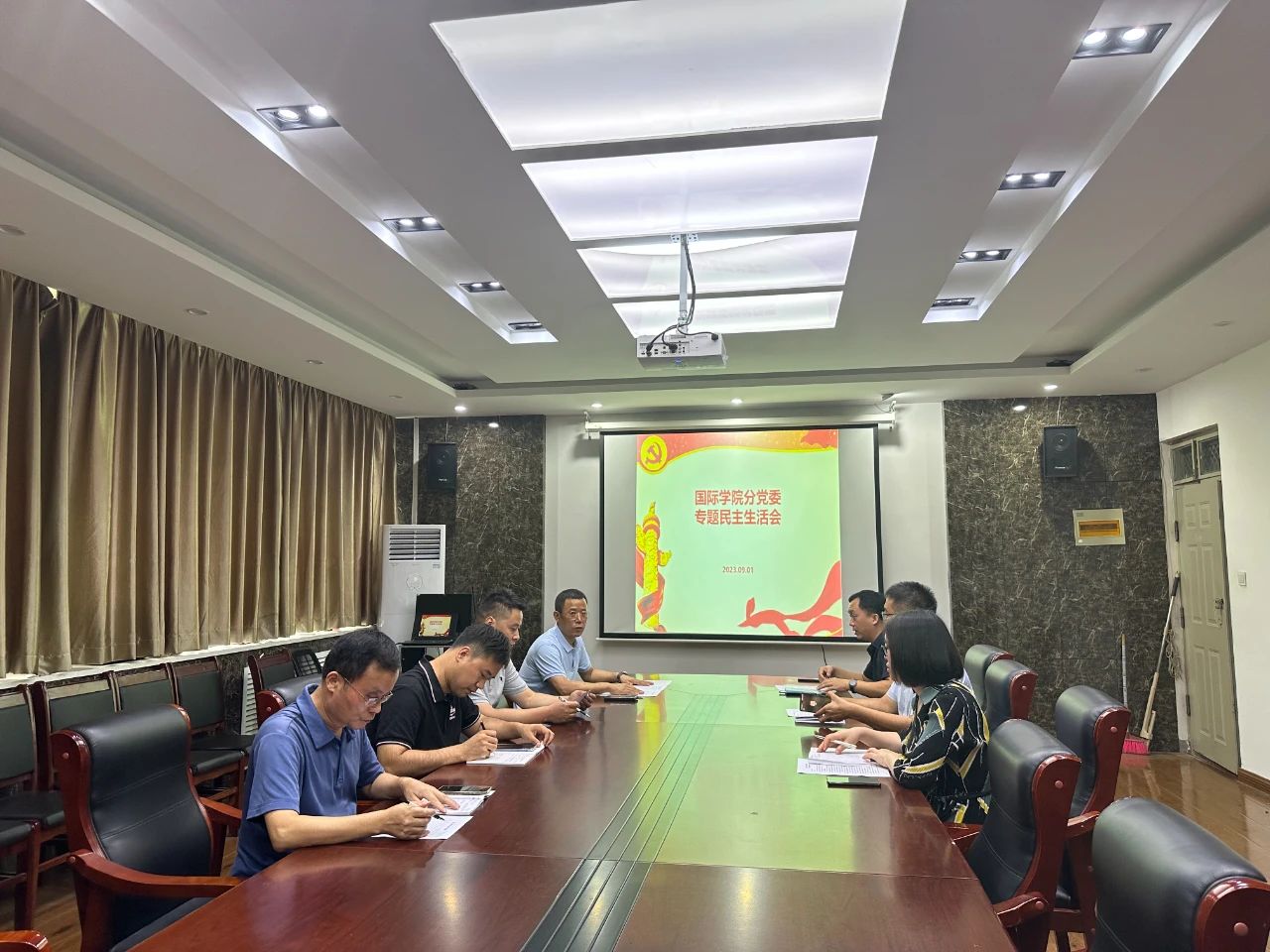 9月1日上午,beats365唯一官网分党委召开专题民主生活会,会议由分党委书记刘景涛主持、副书记郭建伟及其余5名委员参加。