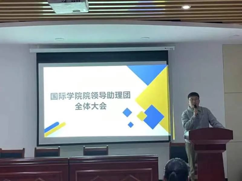会议伊始,副团长杨暮帆和冯怡珂相继上台发言,他们对新干事的加入表示热烈欢迎,并要求全体干事要团结一致,努力将助理团打造成积极向上、氛围活泼的社团。接着,各部门部长依次上台发言鼓励大家要勤学多问,快速进入工作状态,提高工作执行力和工作积极性,努力把工作做到最好,争取做到让大家认可、满意、放心。接着,各部门干事进行自我介绍以及才艺展示,精彩的才艺体现出了不一样的社团张力,同时展现出院领导助理团的青春风采和积极向上的精神风貌。最后,助理团团长朱恒江总结发言,他对院领导助理团开学以来的工作表示充分的肯定,并对下一阶段工作提出以下要求:一是遵循公司和社团的各项规定制度,遵规守纪,完善自身;二是各部门做好相应工作,积极组织活动,展现各部门向上的风采;三是要调整好学习和工作之间的关系,做好学习计划与工作规划,提高学习和工作效率。