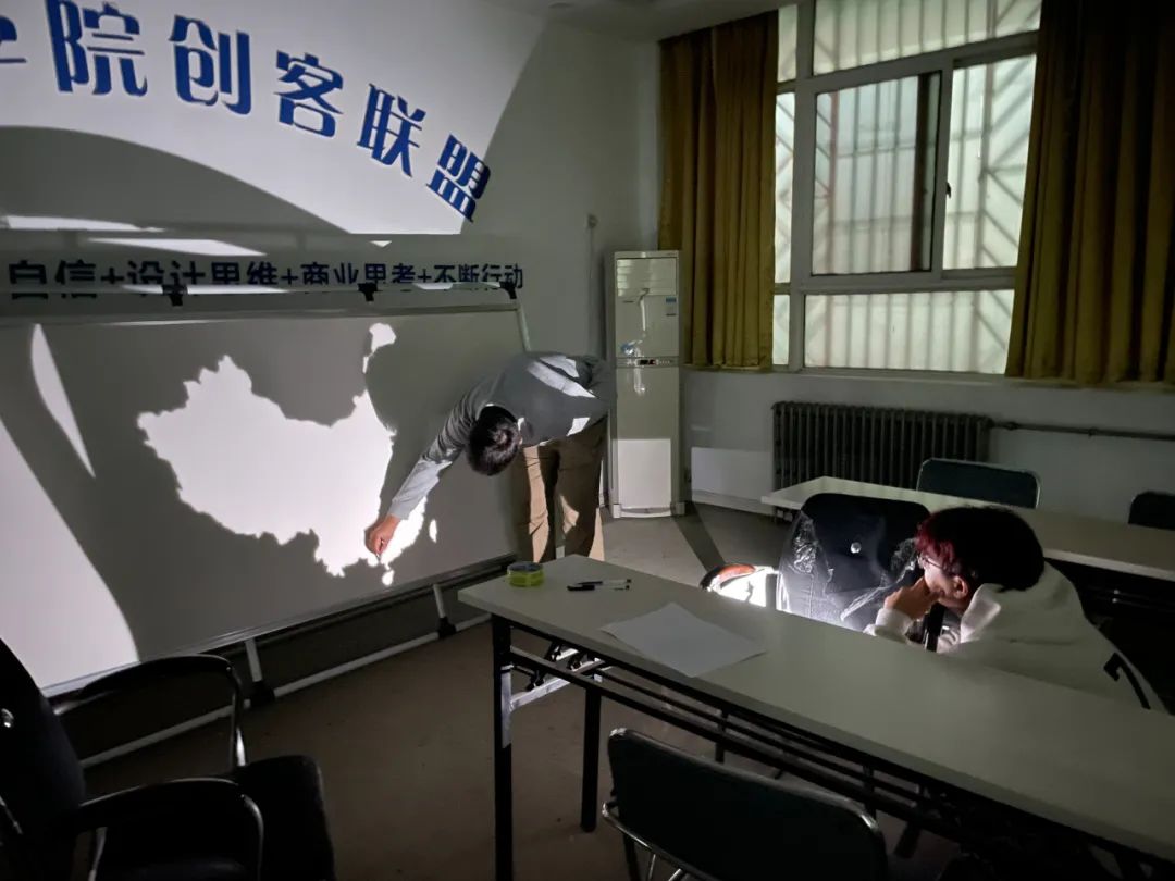 活动现场,在由社团成员组成的底稿小分队的努力下,大美中国底图渐显,精巧勾勒的画板,等待添彩涂色。