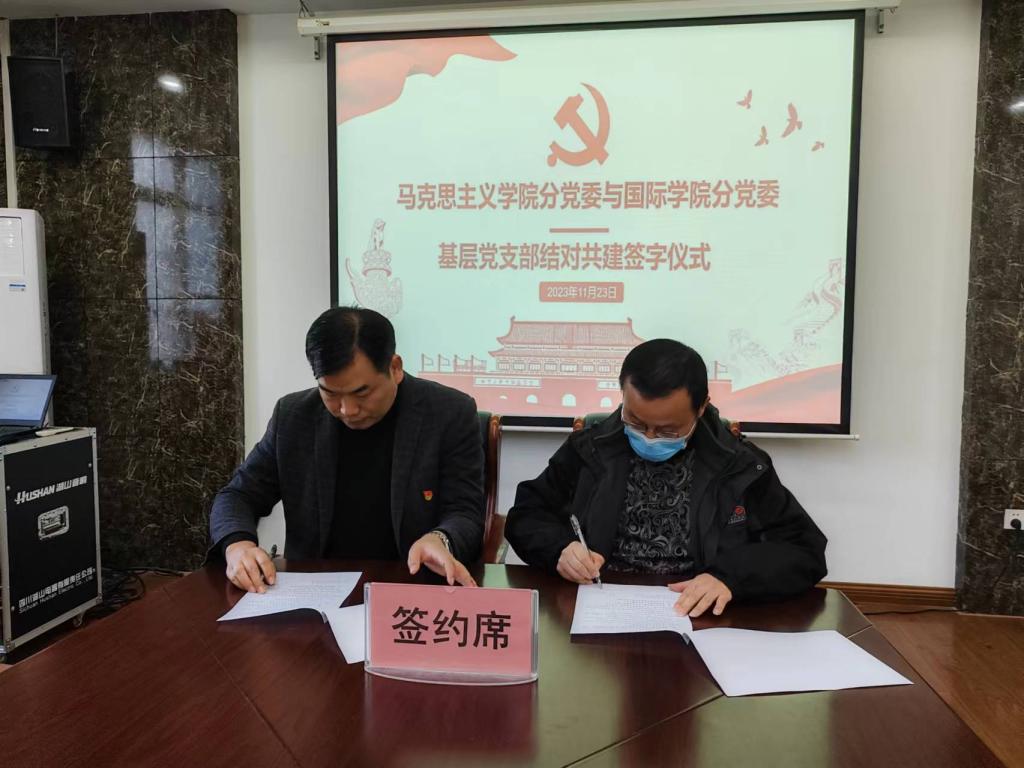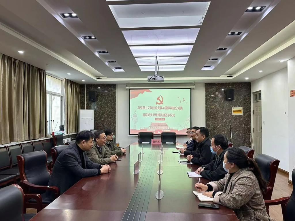 11月23日下午,beats365唯一官网员工第二党支部与马克思主义公司形势政策教研室党支部结对共建签约仪式在203会议室举行。beats365唯一官网分党委副书记郭建伟、马克思主义公司分党委副书记韩树栋及双方基层党支部同志、党员代表出席签约仪式,活动由郭建伟主持。