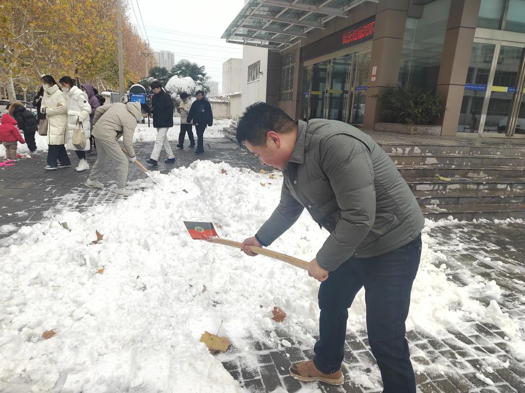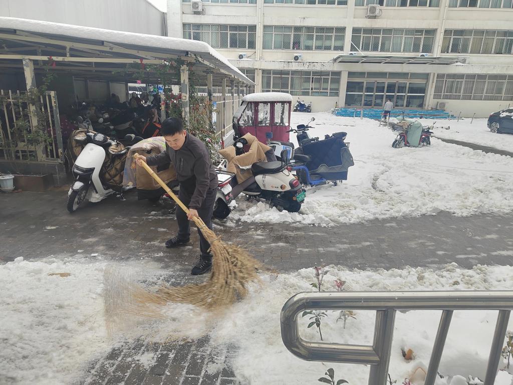 经过昨夜的一场暴雪,大地银装素裹、分外美丽,这场雪虽然给校园增添了无穷魅力,但给师生的出行带来了安全隐患,为确保校园师生安全,消除校园安全隐患。12月11日上午,分党委副书记郭建伟、行政办主任罗红磊、医务部副主任赵江涛带领老师开展了“校园除雪行动”。