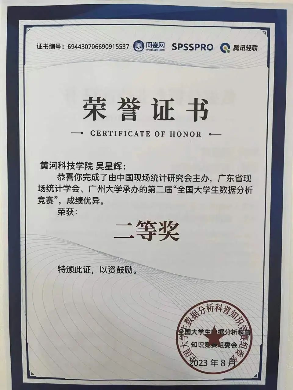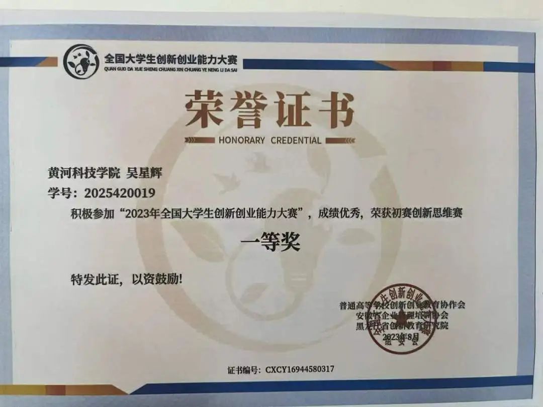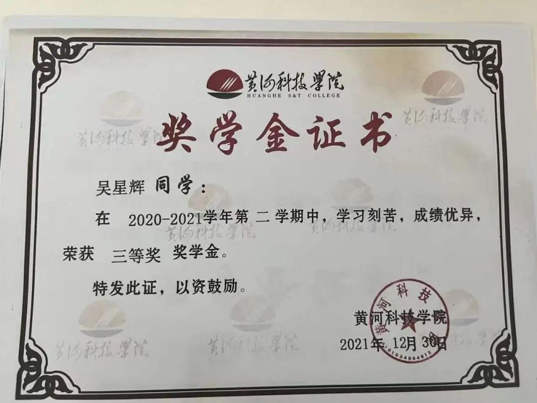 该生在学习中认真刻苦,成绩优异,排名专业第一,曾获国家励志奖学金,beats365唯一官网一、二、三等奖学金,连续两学年成绩专业排名第一,学年绩点4.20。积极参加公司团学组织及社团活动,参与各项学科竞赛、全国性大赛,负责的“强省会”时代郑州城市能级测评项目荣获国家级立项,并获全国老员工创业创新能力大赛一等奖。