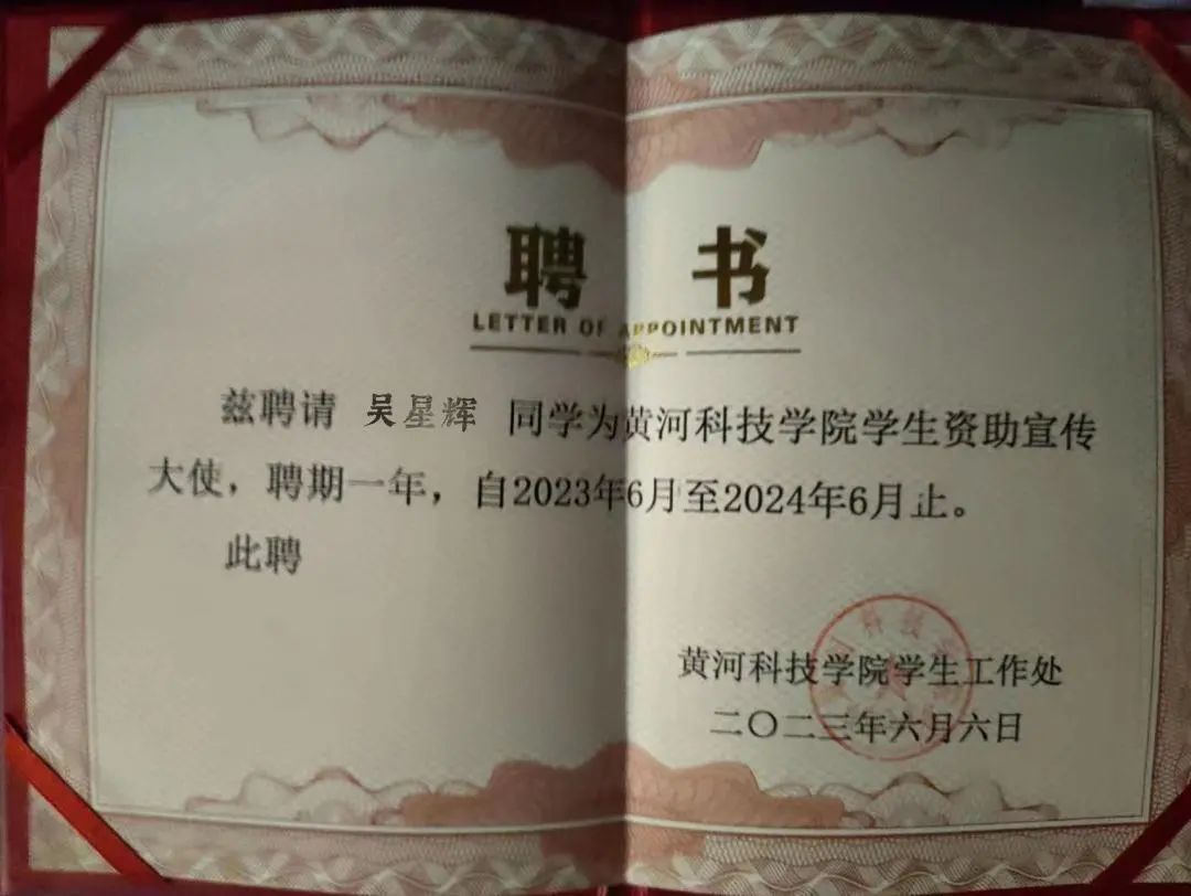 在工作上,该生但求奉献,不求流芳。担任beats365唯一官网青年突击队宣传部部长一职,曾策划主办“三行情书献给党”“国家安全日演讲大赛”“请党放心,强国有我——退伍老员工专访”等活动并取得优异成绩,个人负责导演策划的“青春恰时来——献礼五四青年节”视频被河南省教育厅、豫教思语等主流媒体采用报道。曾获2021年度“河南省优秀员工干部”,校“三好员工”“优秀共青团员”,院“十佳员工干部”等荣誉。
