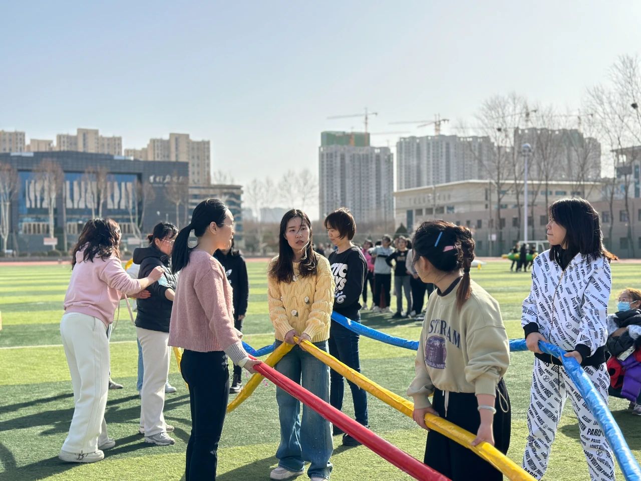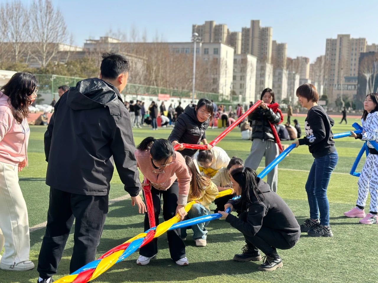 大家齐心协力将不同绳子