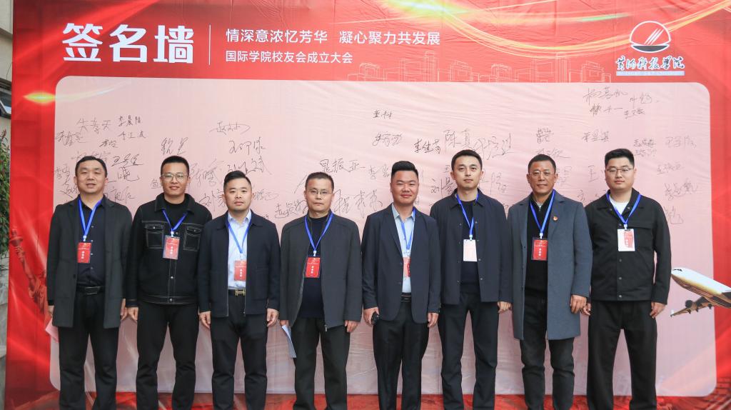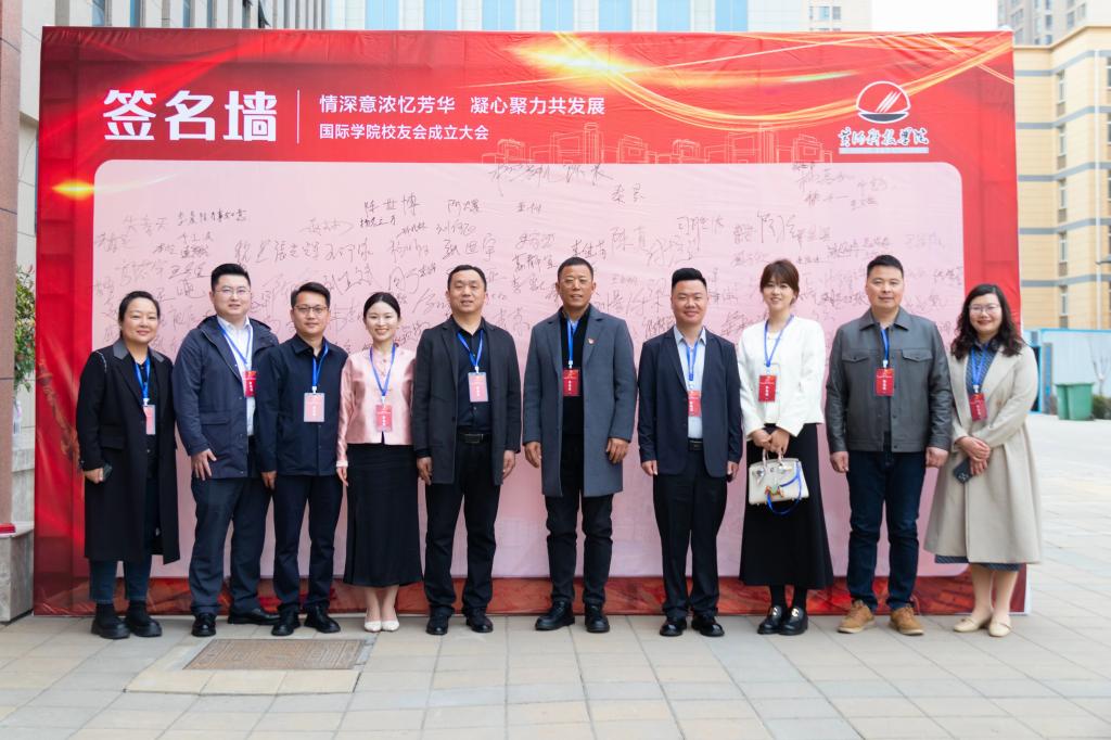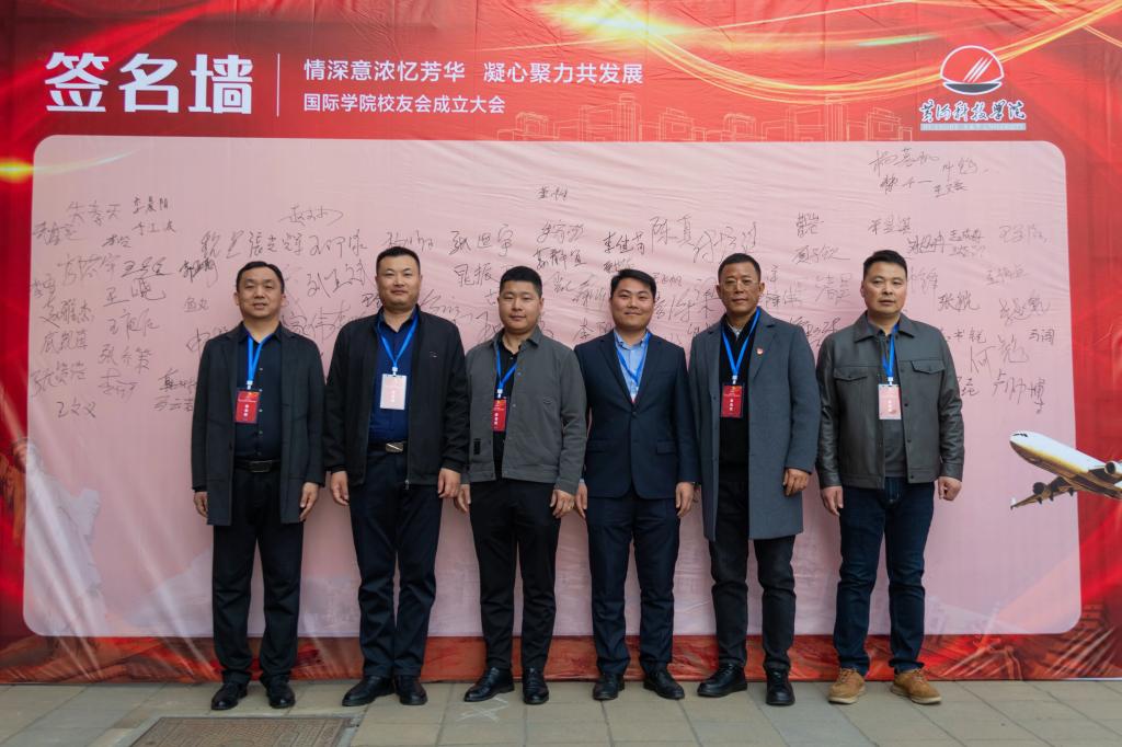会前,员工们在签名墙前签字合影留念。