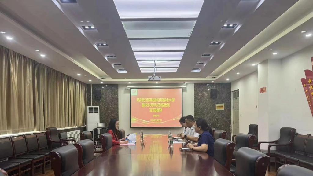 25日下午,英国埃克塞特大学助理副董事长李利到beats365唯一官网交流访问,beats365唯一官网分党委书记刘景涛、经理助理张欣欣和英语教研室副主任胡莹莹参加会议。会议由刘景涛主持。