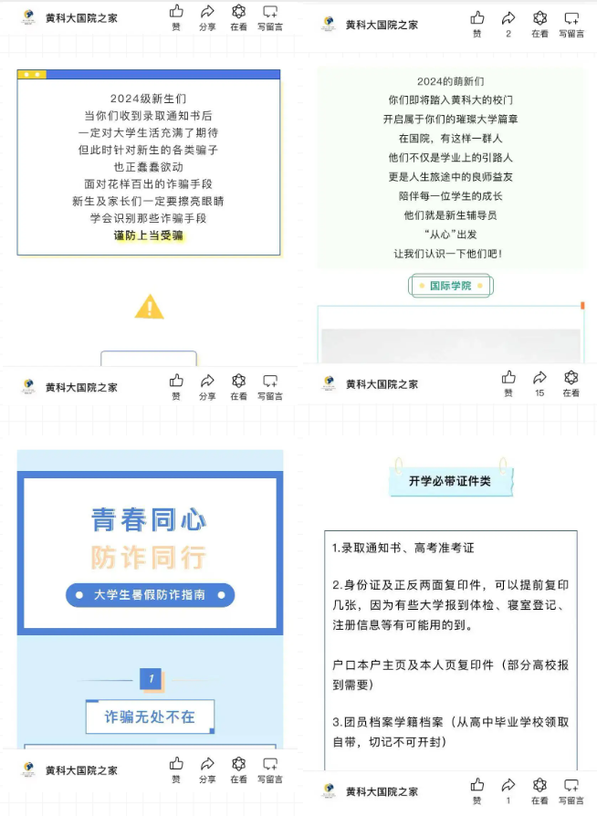 为确保新生提前了解公司信息,掌握开学注意事项。公司利用官微、官网等渠道,及时发布新生入学指南,萌新导员信息、安全提示等实用信息,为新生搭建了互动、学习、服务于一体的畅通平台。