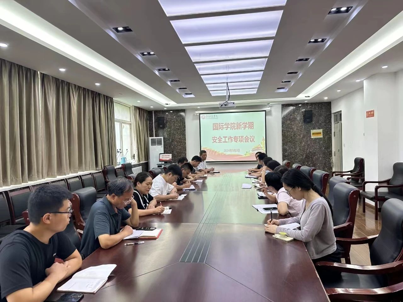 刘景涛强调,辅导员要针对新生开展一系列的安全教育工作,以确保能够在一个安全健康的环境中学习和生活。明确指出员工归校后需严格遵守公司的管理制度,严禁晚归、夜不归宿等行为,包括交通安全、消防安全、饮食安全、网络安全等。通过生动的案例和详细的讲解,让辅导员们深刻认识到安全无小事。强调安全意识的提升与自我约束的重要性,呼吁全体同学共同维护在校期间的良好秩序与氛围。