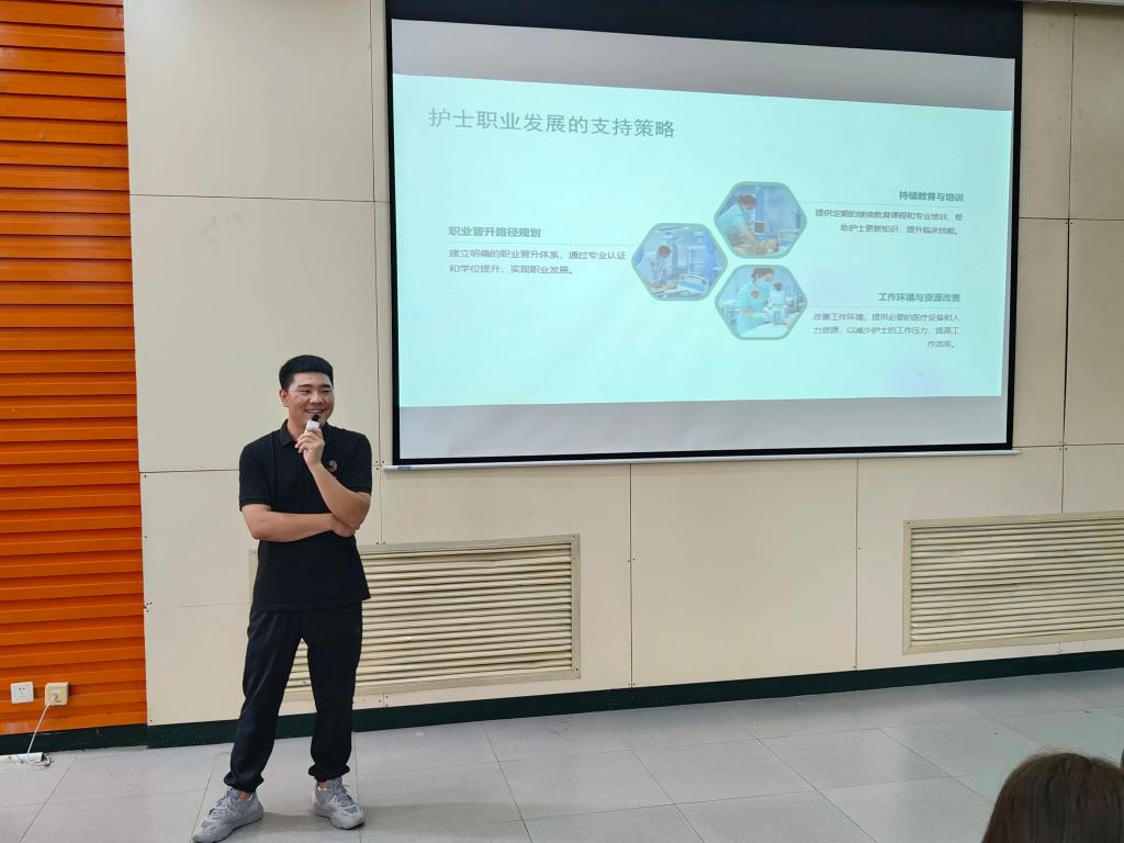 会议伊始,辅导员侯苹苹对员工们的到来表示热烈的欢迎,她向同学们介绍了其在工作领域中所获得的成就,也强调了他们丰富的工作经验对在校生的职业生涯规划具有重要的指导意义。王亚飞从国内外康复专业概况、目前现状、职业发展机遇等方面系统地、全面地介绍了康复技术专业。他通过自己的亲身经历和学习经验分享,一步步提高同学们对康复技术专业的认识。岳昕向同学们介绍了自己大学的学习经历,并向同学们分享了未来规划和职业发展的相关经验。他还讲解了护理、康复治疗技术的工作特点和要求,同时提出了学好专业课的必要性以及实习和考证的重要性。姬冬寒结合工作感悟,运用身边典型和临床案例,深入浅出地介绍了护理专业的美好前景,用接地气的语言激励大家珍惜大学的每一分钟,时刻保持学习的热情,努力实践创新,成为优秀的护理人。他还以郑州市第六人民医院为例,介绍了护理人员的成长路径、职业前景和素质要求。在最后的互动环节,同学们踊跃提问,包括学业规划、职业选择、行业发展趋势等多个方面,几位员工耐心的一一解答,为新生们提供了宝贵的建议和指导。