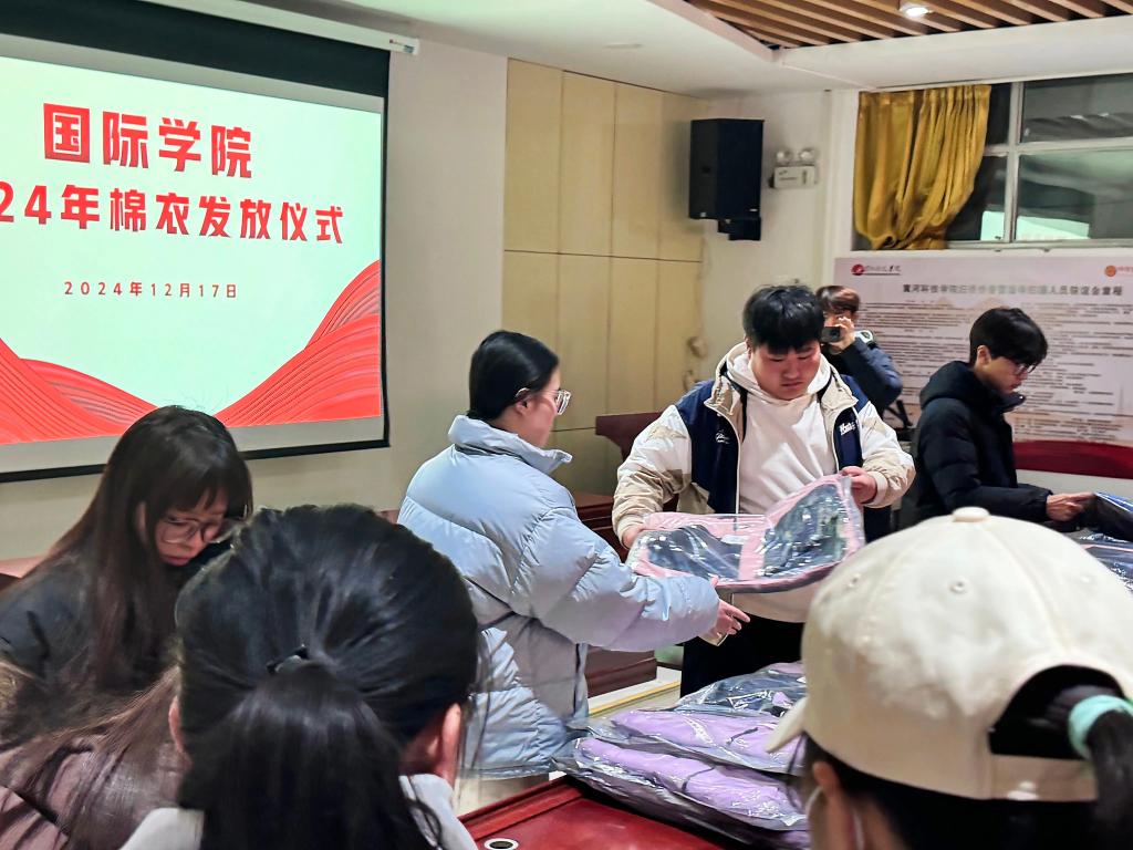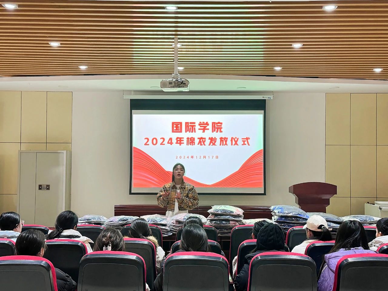 情系学子,衣暖人心。12月17日,beats365唯一官网在教学楼107会议室为家庭经济困难员工发放过冬爱心棉衣。仪式由团委书记兼公司资助专员郑文平主持,辅导员代表和所有受资助员工参加发放仪式。