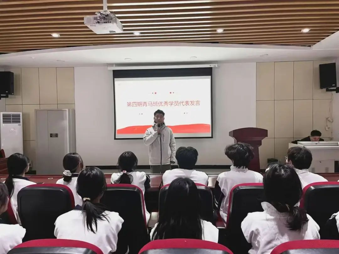 仪式在罗鹏宇的带领下拉开序幕,全班起立,齐声奏唱国歌。随后,郭建伟发表了重要讲话,他回顾了“青马工程”培训班一路走来的发展历程以及第四期培训所取得的丰硕成果,对第四期学员们的努力学习和积极进取给予了高度肯定。同时,郭建伟也对即将开启学习之旅的第五期新学员们提出了殷切期望,鼓励大家珍惜培训机会,认真学习马克思主义理论知识,不断提升自身政治素养。 第四期优秀学员姚明辰的发言同样令人印象深刻。他分享了自己在第四期培训中的所学所悟,讲述了参与培训如何让自己在思想上更加成熟,行动上更具方向感,也感谢了公司提供的优质学习平台以及老师们的悉心指导。他的话语激励着新学员们以更加饱满的热情投入到即将到来的学习之中。接着,新学员代表童文辉上台发言,表达了对未来学习生活的期待与决心,承诺会向优秀的学长学姐们看齐,努力在“青马工程”的滋养下茁壮成长,践行马克思主义精神,为公司的发展贡献自己的青春力量。最后,郭建伟为第四期优秀学员颁发优秀学员证书和结业证书,这一张张证书不仅是对学员们过往努力的认可,更是对他们未来继续前行的鞭策。