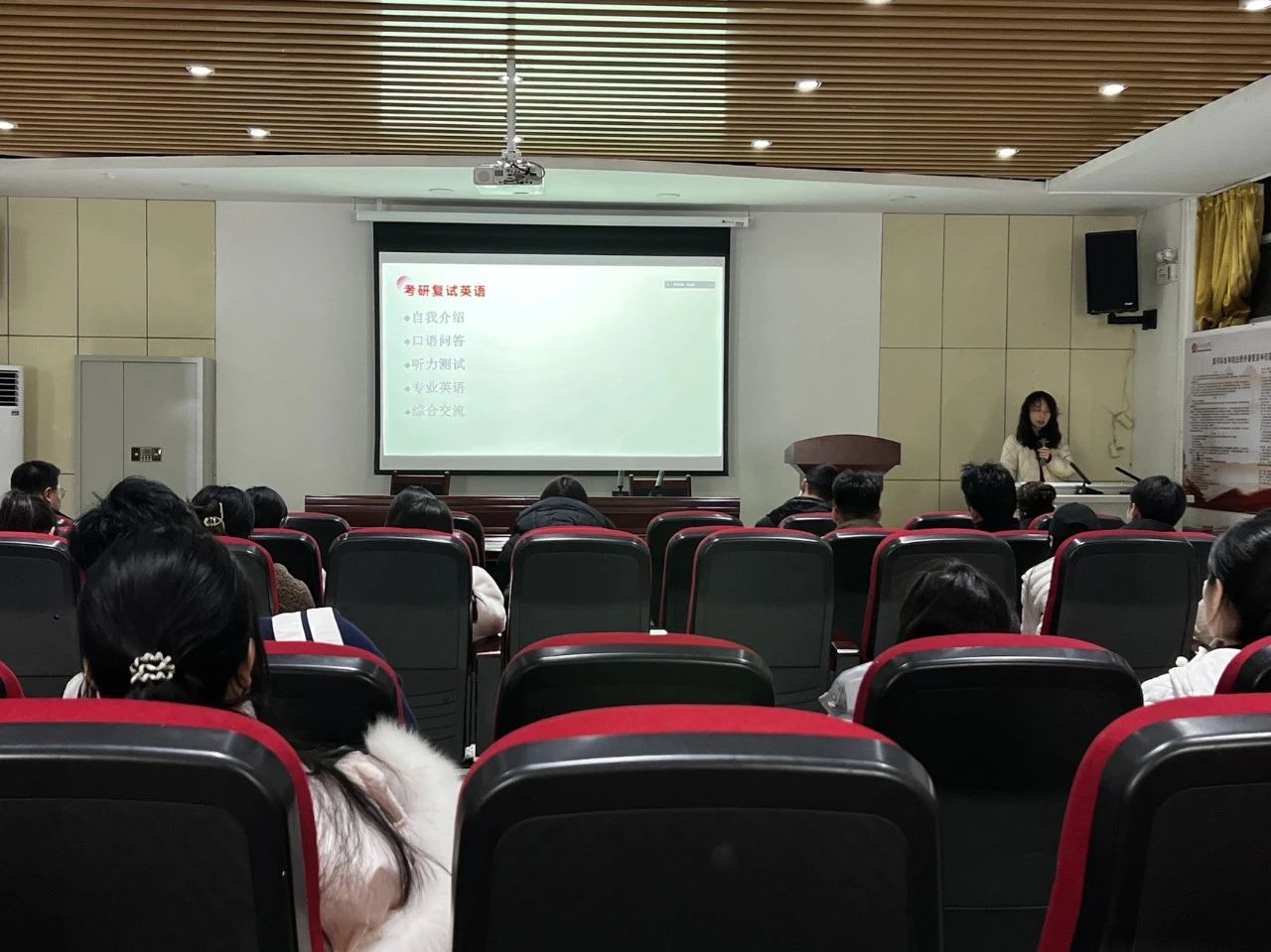 会议伊始,张向阳从近年考研趋势、复试主要内容和形式、复试中的注意事项与常见问题等同学们比较关注几个方面对研究生复试进行了解读。他建议同学们要多次开展模拟面试,同时要树立信心,以良好的心态参加研究生复试或调剂。随后,各教研室老师从研究生导师选拔员工的角度,围绕复试笔试、英语面试、综合交流等方面进行指导,提醒同学们一定要多关注时政新闻,面试时要英语表达连贯、回答问题谈吐自然、落落大方,从容面对复试。接着,张向阳围绕研究生复试的时间节点、具体要求、复试应做准备以及注意事项,给同学们进行耐心指导,并对同学们提出的问题和疑惑进行解答。最后,张向阳强调了面试礼仪及表达、导师联系及选择、材料撰写注意事项等内容。并且,他对同学们前期的辛苦付出和取得的优异成绩给予了充分肯定,预祝大家取得好成绩!