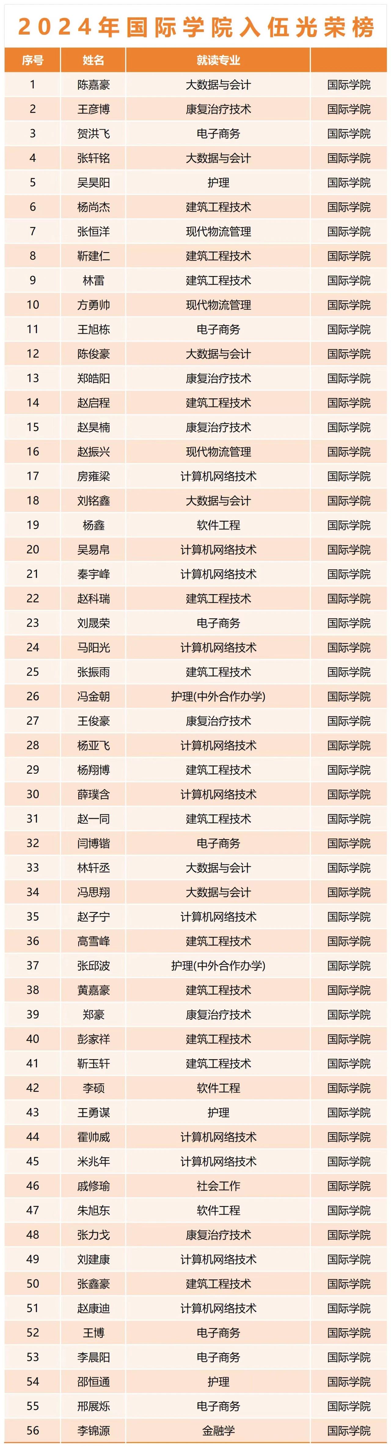 青春岁月里,总有人怀揣炽热梦想毅然投身军营,将个人成长与国家命运紧密相连。2024年入伍学子积极响应国家号召,以高度的责任感和使命感,投身到国防事业的建设中。他们在各自的岗位上兢兢业业、拼搏奋进,用实际行动诠释着军人的使命与担当。下面,让我们怀着无比崇敬与自豪的心情,以庄重的态度、崇高的敬意,一起来揭晓他们的光荣榜吧!
