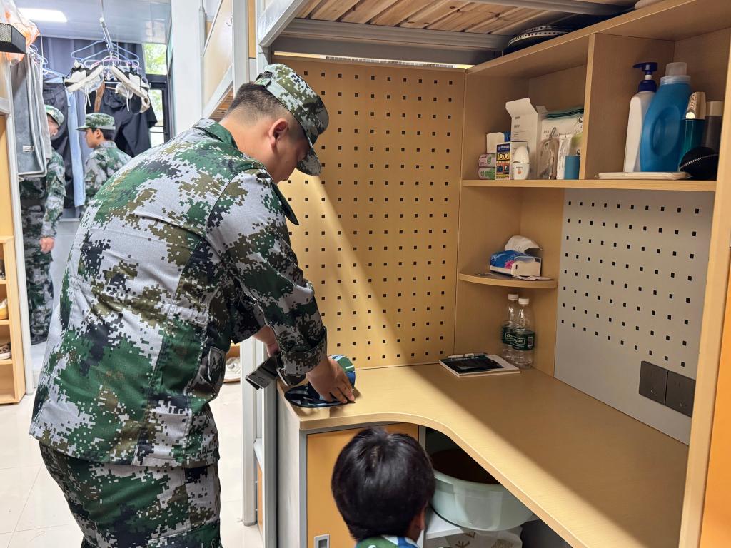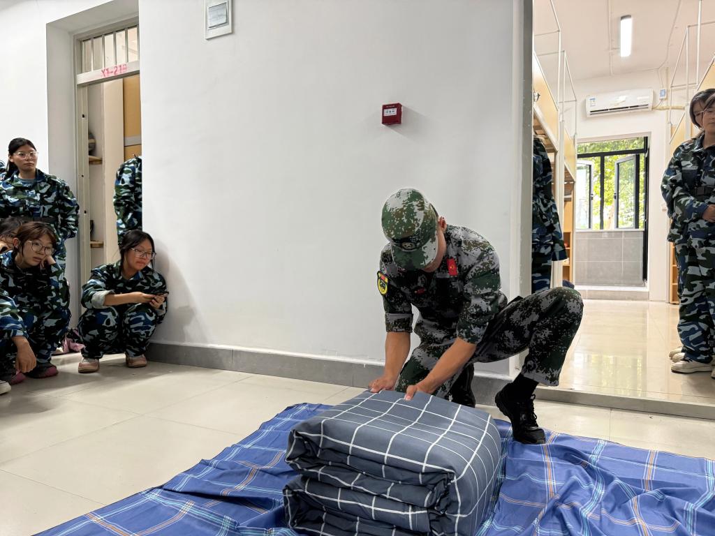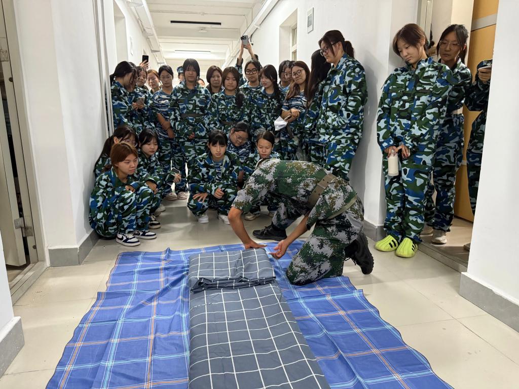 “出门看队伍,进门看内务。”训练场上磨练精神,内务整理彰显态度,同学们在教官的指导下学习如何叠出完美的“豆腐块”,为养成良好的生活习惯打下坚实的基础。