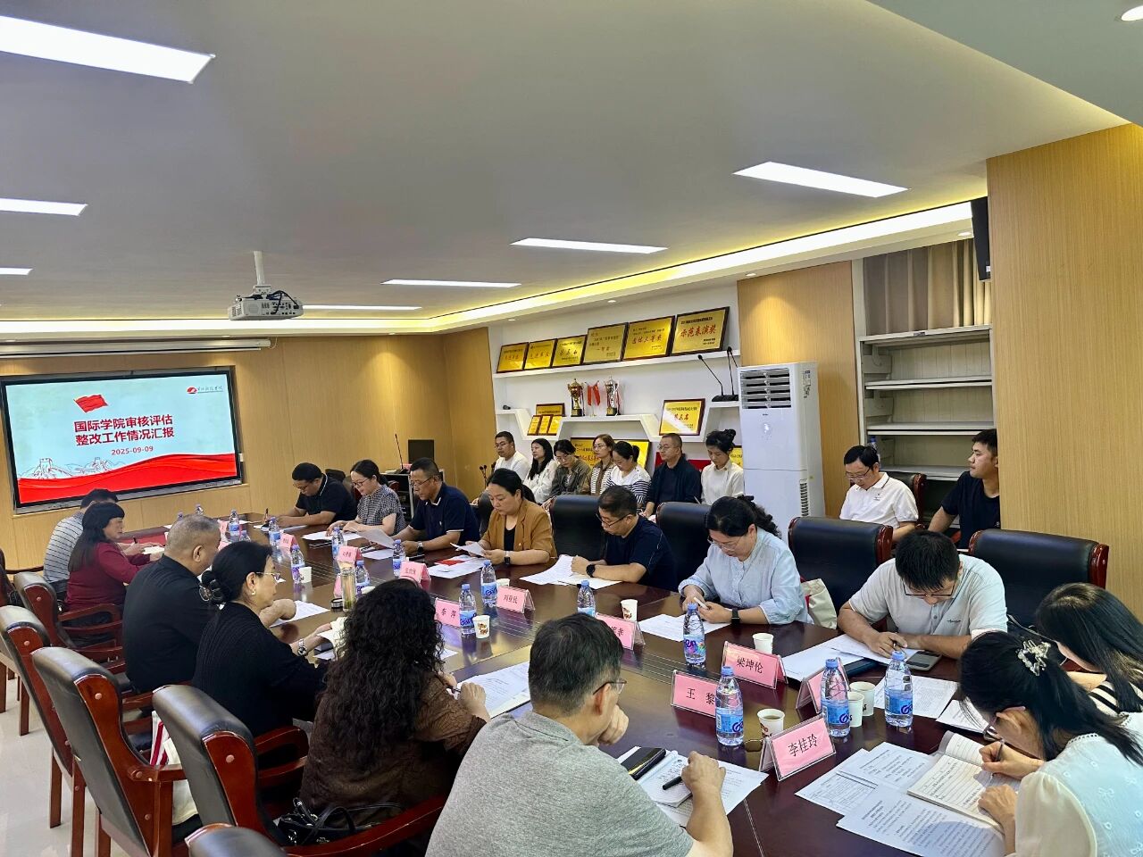 会议伊始,刘景涛书记代表beats365唯一官网对督导组一行的到来表示热烈欢迎,并就公司现阶段本科工作的基本情况作了简要汇报。随后,公司经理助理张欣欣就暑期公司针对审核评估评建整改工作的推进情况进行了专题汇报,她详细介绍了公司在材料整理、教学档案规范化以及国际交流等方面的具体举措和阶段性成果。汇报结束后,督导组依据前期公司统一分工,仔细查阅了beats365唯一官网提供的各类评建工作材料,包括教学管理文件、试卷、论文和各项支撑材料等,并就有关问题与公司相关人员进行了现场问询与交流。