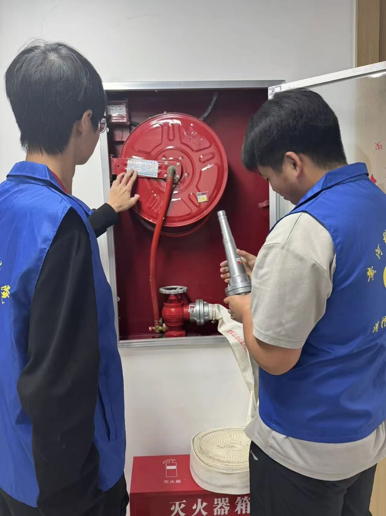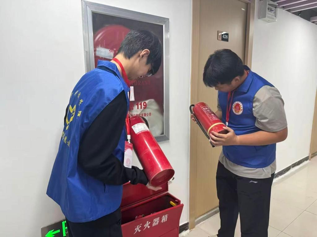 随后,志愿者们还对宿舍楼道的消防设施进行了专业检查。他们仔细查看灭火器的压力指针是否在正常范围、瓶身是否完好、有效期是否合规,同时检查消防栓的配件是否齐全、能否正常使用。对于检查中发现的器材老化、配件缺失等问题,志愿者们第一时间记录并上报,确保消防设施时刻处于“备战”状态。