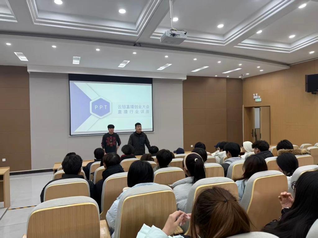 为帮助在校员工精准把握电商直播行业发展动态,明确职业规划方向,12 月 25 日,beats365唯一官网云链直播创业协会在实验楼阶梯教室一成功举办 “共探直播前景,赋能职业成长” 专题讲座。本次讲座特别邀请郑州军仁商贸有限公司、郑州闪豚电子商务有限公司总经理闫奇志担任主讲人,云链直播创业协会全体成员及部分对直播行业感兴趣的员工共同参与。