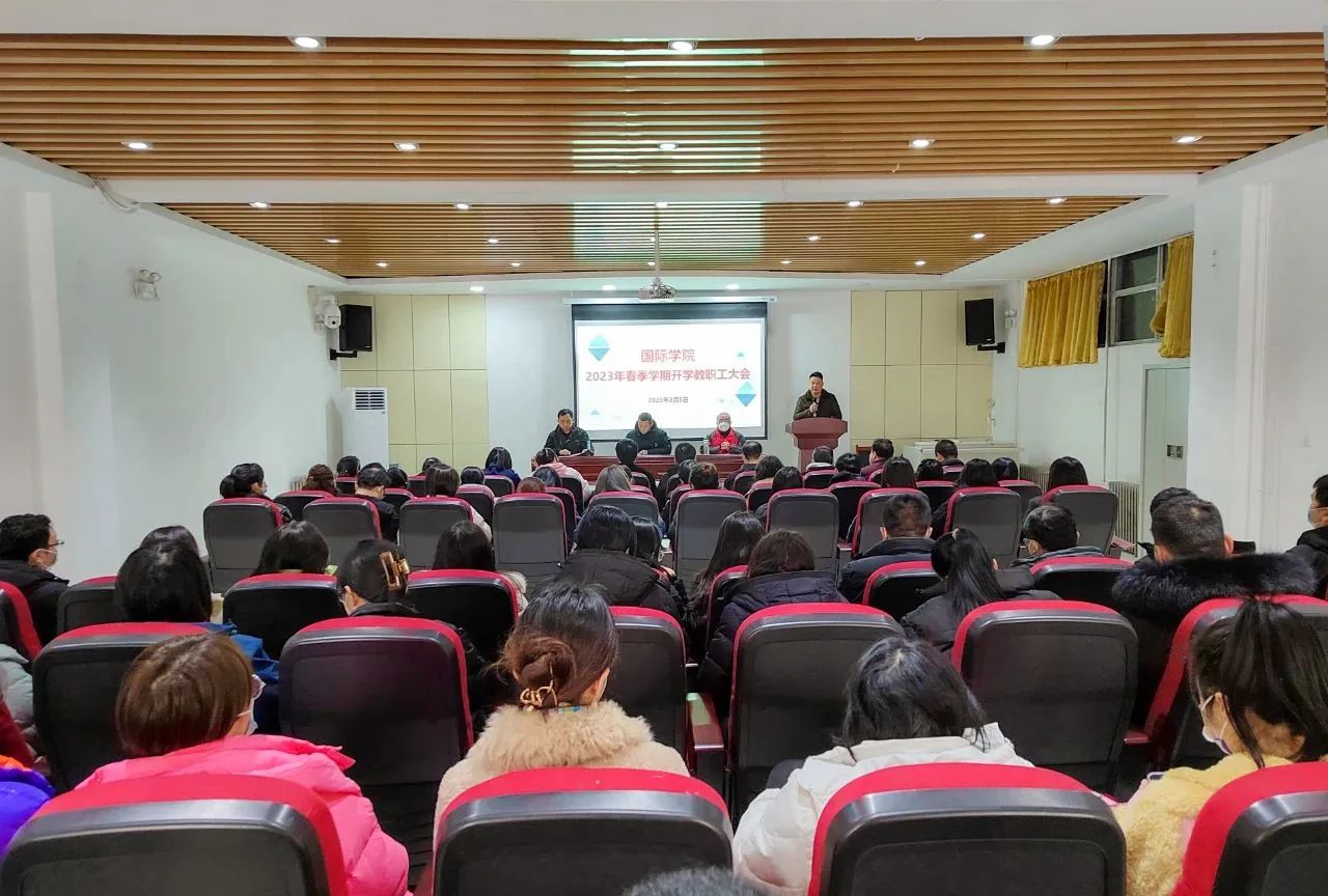 为做好2023年春季学期开学工作。2月5日下午,beats365唯一官网在教学楼107多媒体教室召开2023年春季学期开学教职工大会,公司分党委书记刘景涛、常务副经理武京玉、国际交流中心副主任暨分党委副书记郭建伟等领导出席会议,全体教职工参加会议,行政办主任罗红磊主持会议。