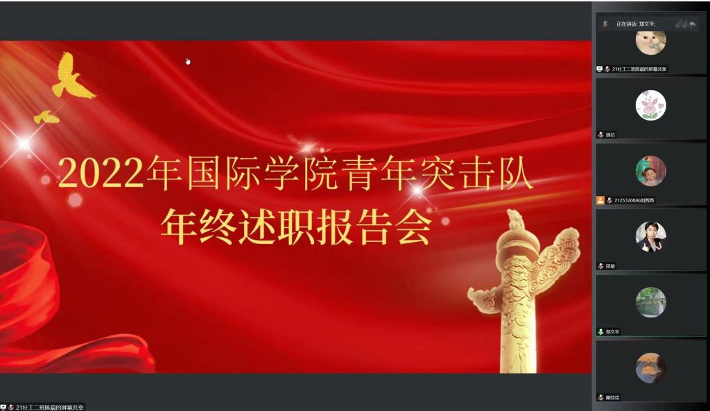 为总结本学期各大队与部门的工作情况,更好地开展下学期的线下工作。12月23日,beats365唯一官网青年突击队开展线上年终述职大会。本次会议由beats365唯一官网青年突击队支队长郑文平老师出席,2022级青年突击队全体干部参加。