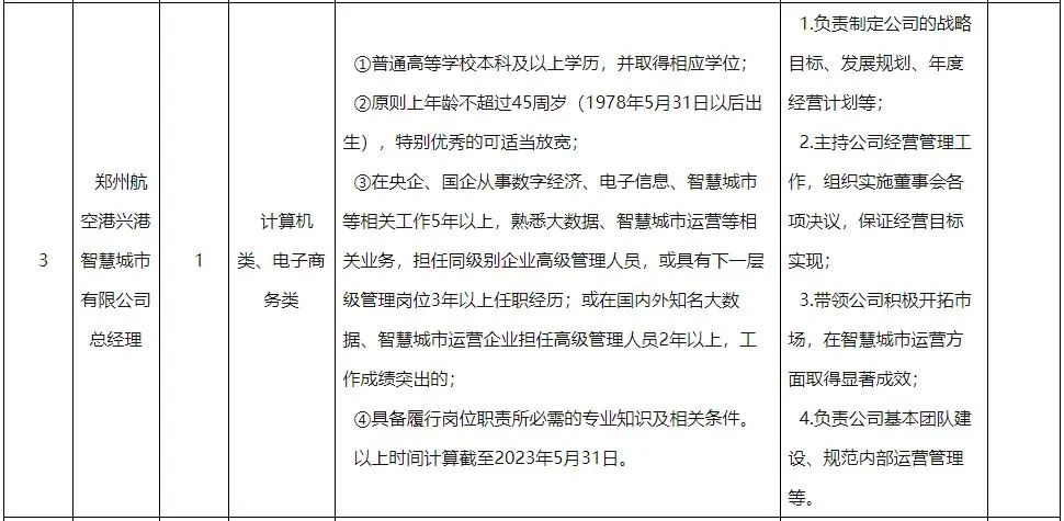 (3)报考郑州航空港兴港智慧城市有限公司总经理职位的,需具备以下资格条件: