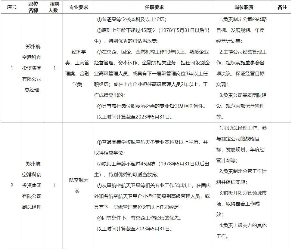 (1)报考郑州航空港科创投资集团有限公司总经理职位的,需具备以下资格条件: