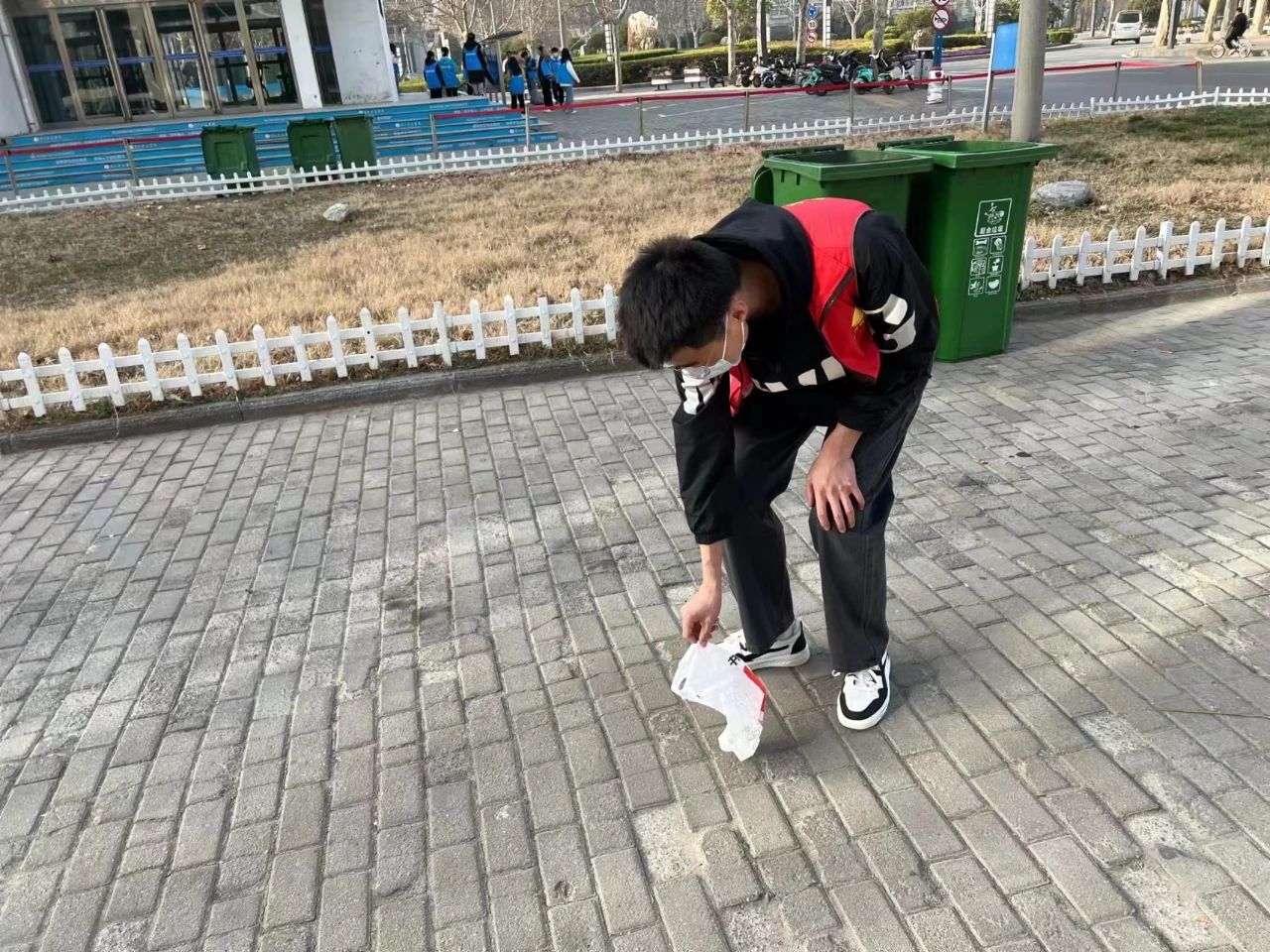 活动伊始,刘博带领志愿者进行动员宣誓,希望志愿者秉持助人为乐的雷锋精神和服务同学的奉献精神,全身心投入到活动中去。随后,刘博将志愿者分为两个小组,一组负责扫除校园道路上的垃圾,掉落的树干树叶,清理草坪内的垃圾。另一组负责擦拭公司门口的告示牌与栏杆,扫落台阶的灰尘。活动过程中,志愿者通力协作,发扬劳动精神,发挥雷锋精神新时代"向上向善"的内涵,你捡我扔,你扫我清,互帮互助。经过志愿者几小时的辛勤劳动,教学楼周围的环境变得焕然一新。最后,刘博对志愿者能够积极参与本次志愿活动表示感谢,并希望志愿者在本次活动中体会劳动的不易,真正地将雷锋精神内化于心、外化于行。