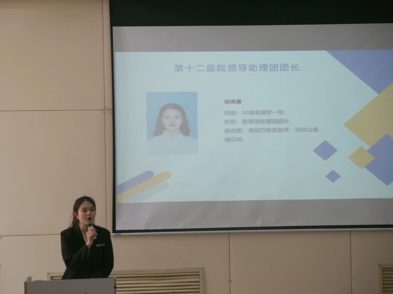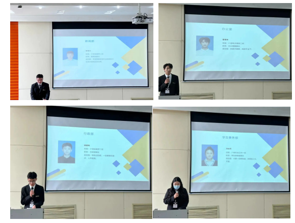 新一届各个部门的部长代表上台进行就职演讲,他们对自己提出了要求,也对院领导助理团这个大家庭寄予了厚望!