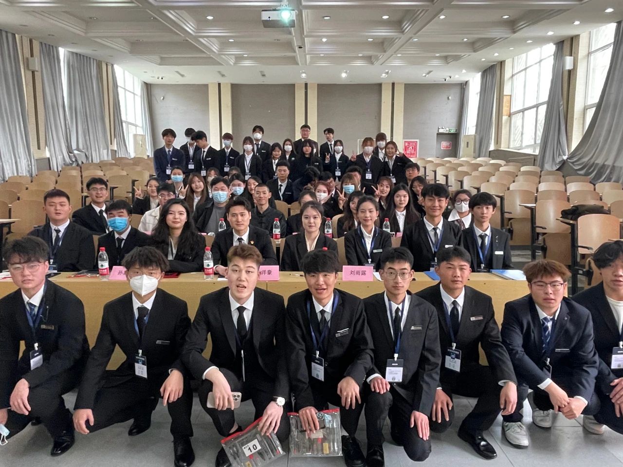 赵洋豪为第十二届团长刘雨露和副团长孙嘉阳颁发聘书。聘书颁发过后,各位进行合影留念。