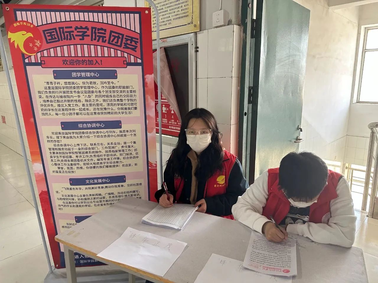 组织成员在教学楼内开设“入团咨询”公益站点。