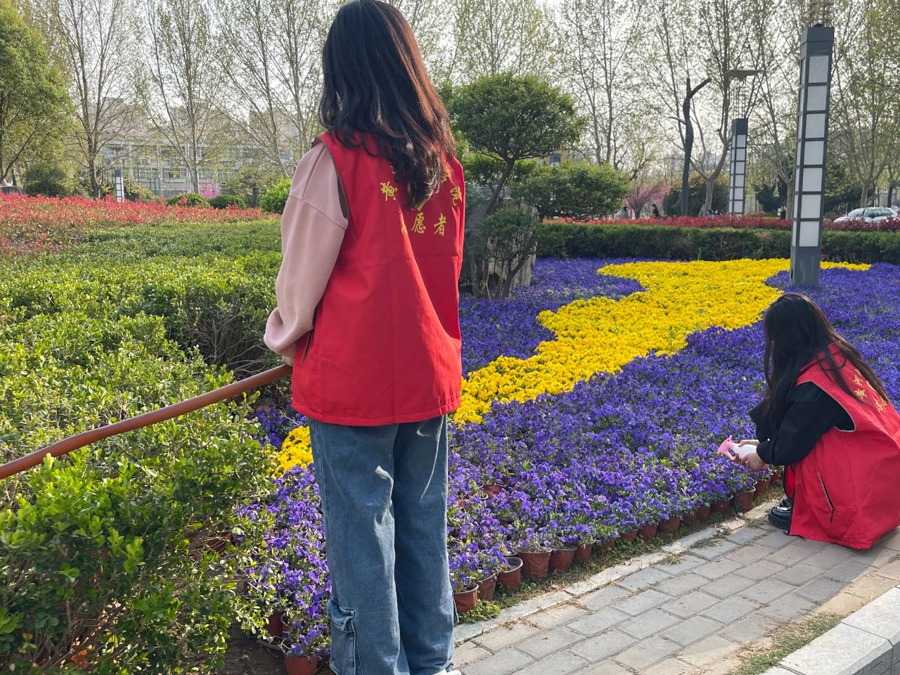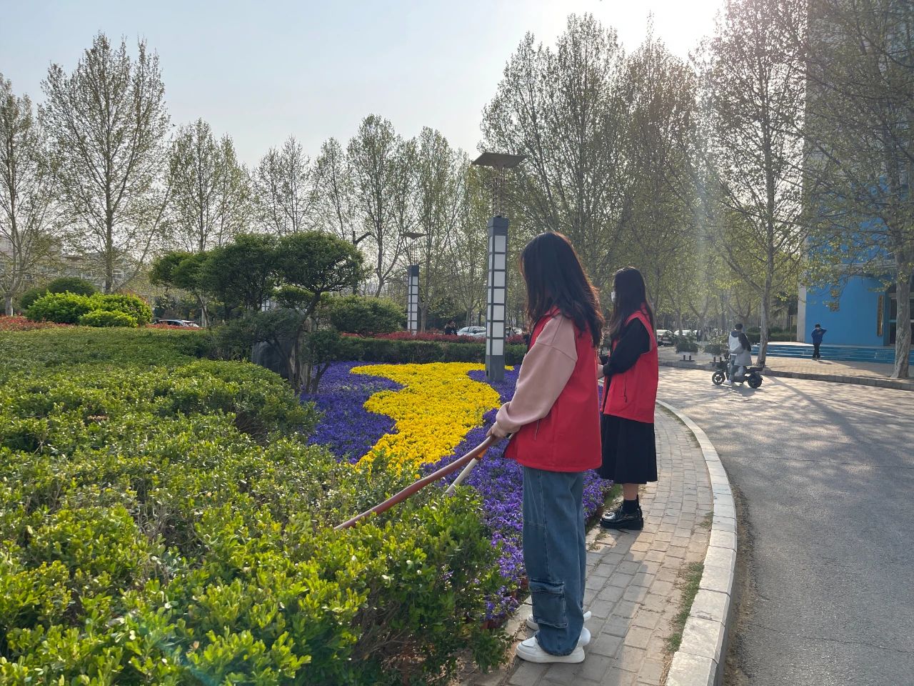 看到美丽的花圃,小团子们主动进行浇花,感受自然之美。