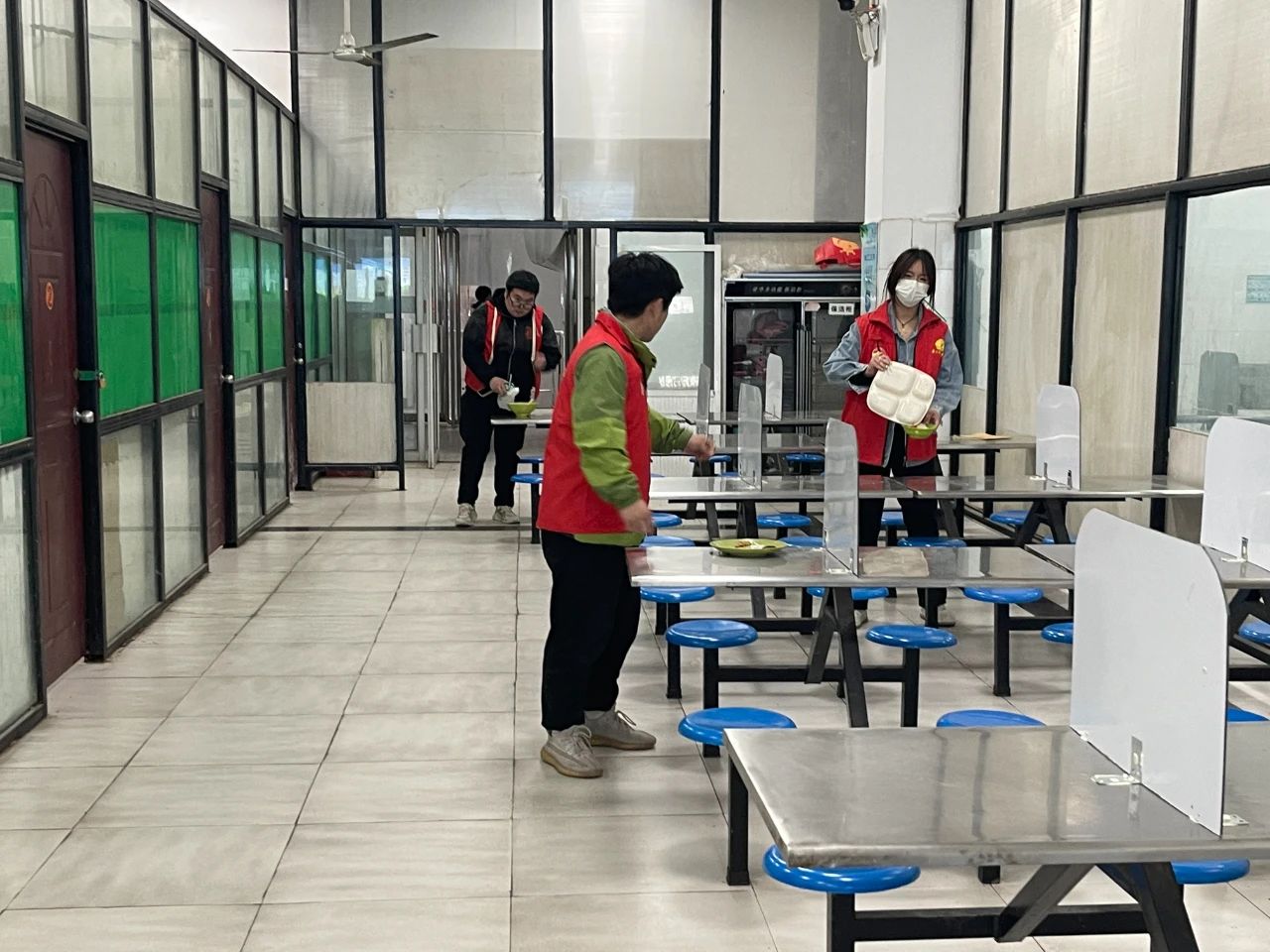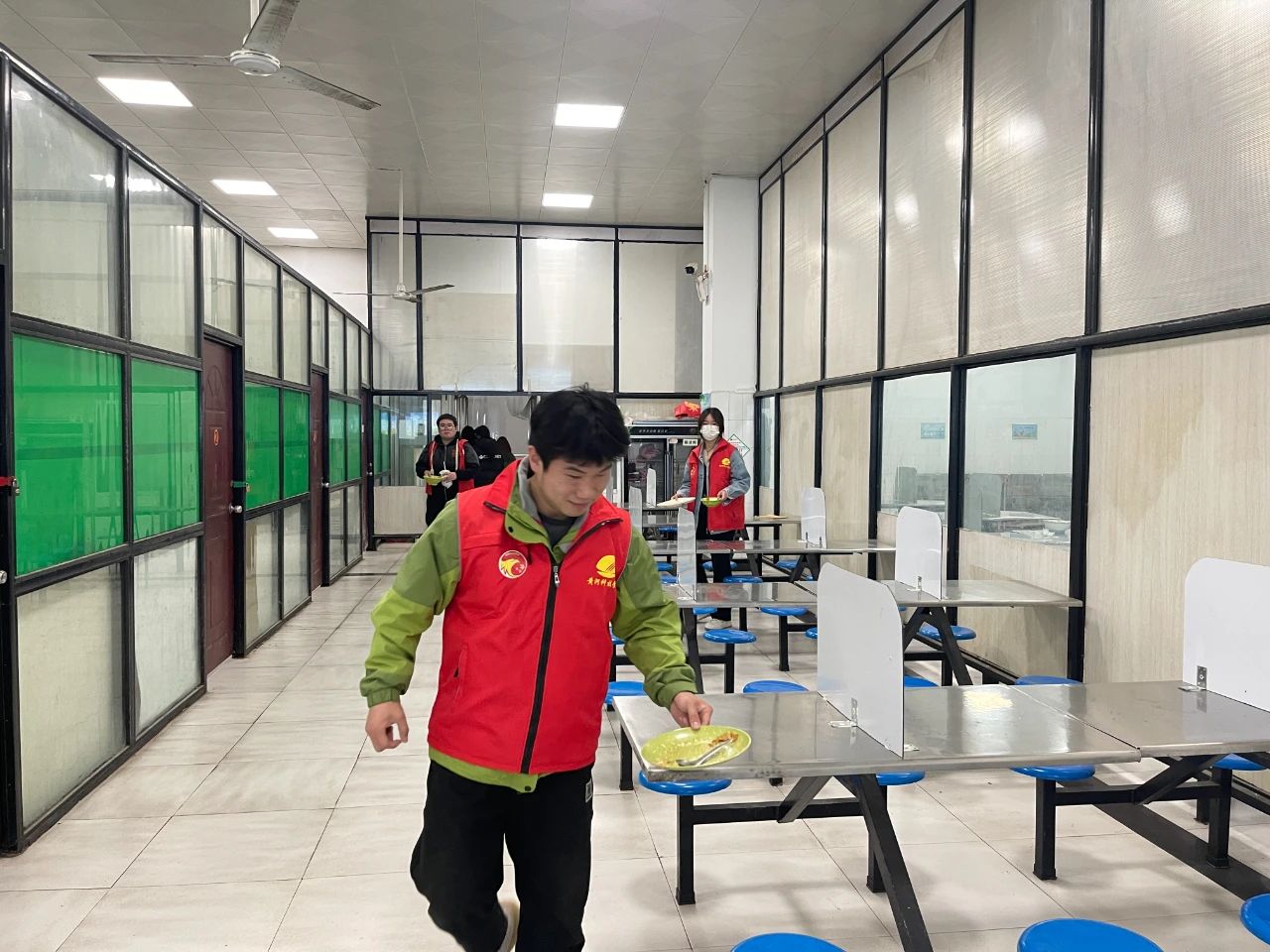 协助食堂工作人员对遗漏的餐盘进行清理打扫