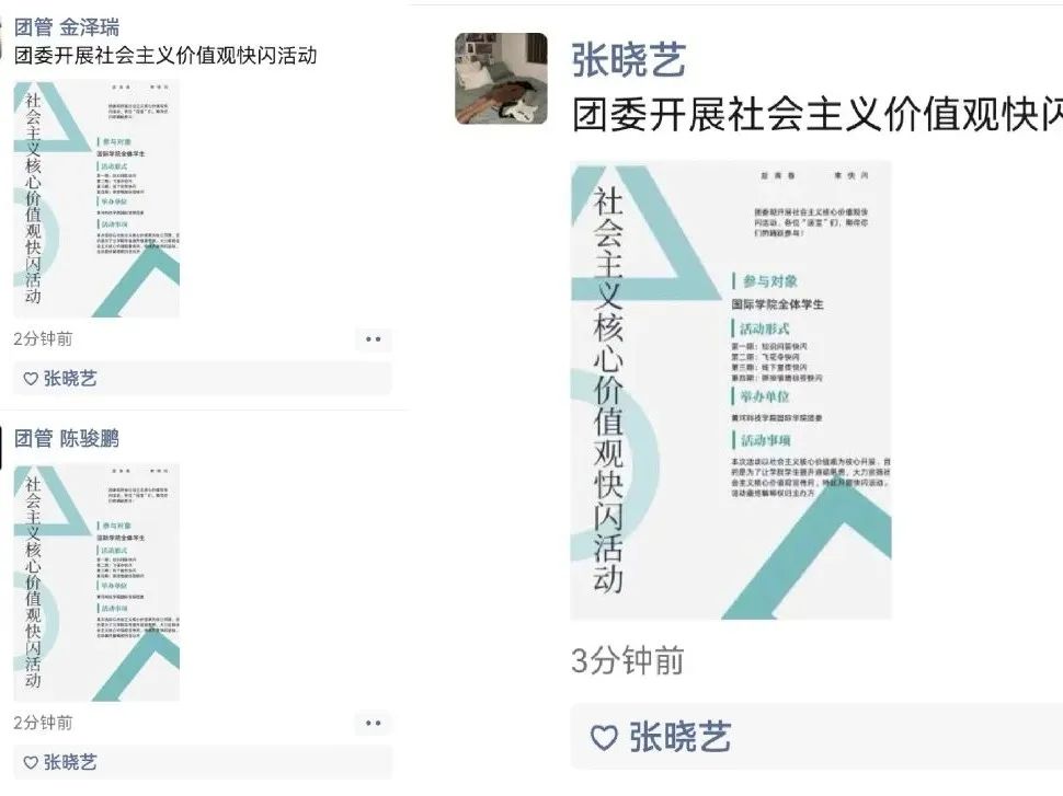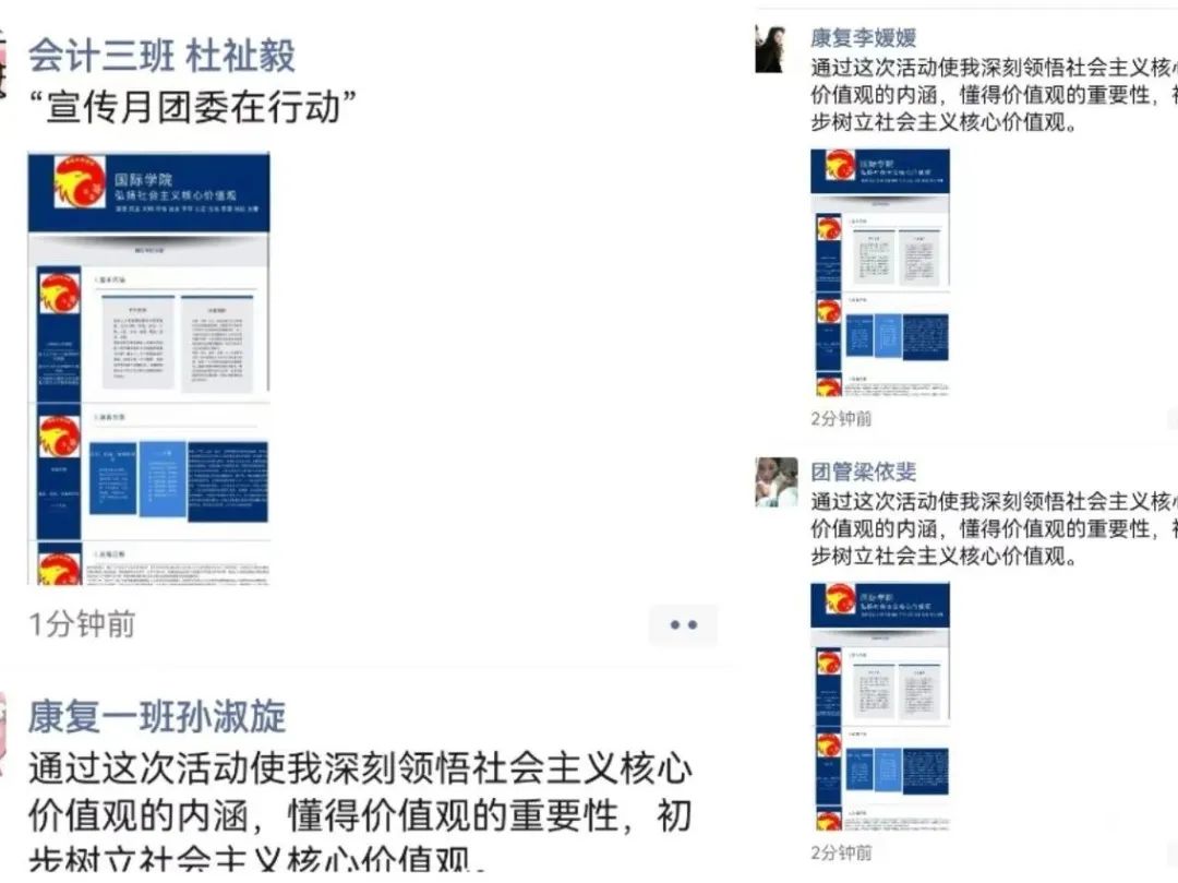 在通讯飞速发展的时代,网络也是宣传必不可少的工具之一,组织成员们自发性的将有关社会主义核心价值观的海报以及相关活动和知识转发到朋友圈。不仅能让身边的同学们更了解核心价值观的内涵,还可以让亲朋好友了解到公司多姿多彩的活动以及丰富的课余生活,将网络宣传作用发挥到了极致。