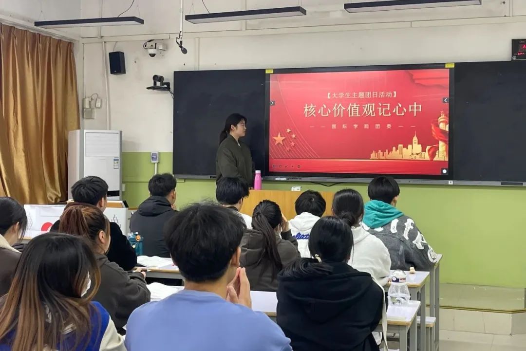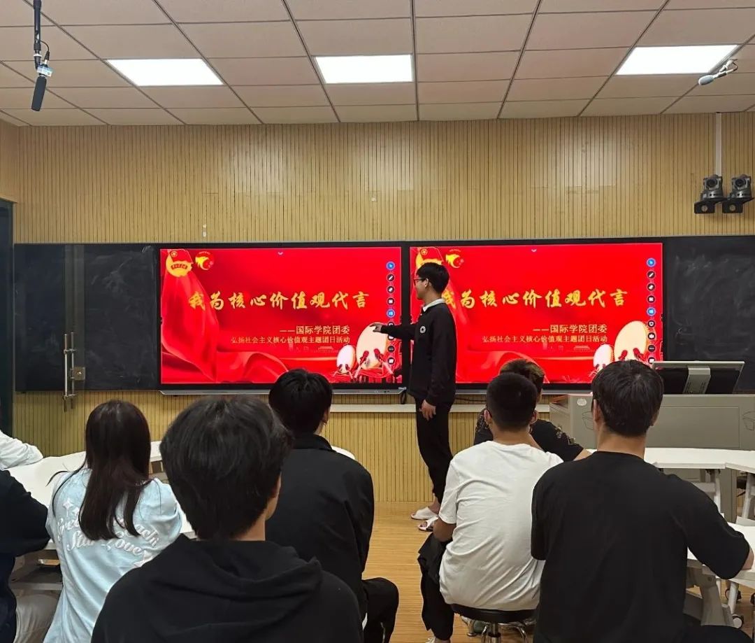 社会主义核心价值观与班级日常会议相结合,能起到潜移默化培养同学们的价值观意识。对外交流中心部长张榆琳选择开展主题班会的形式,用讨论以及普及相关知识的方式,让同学们在班会当中提升自己,将价值观深刻的烙印在心中,把普通的班会赋予更独特的意义。