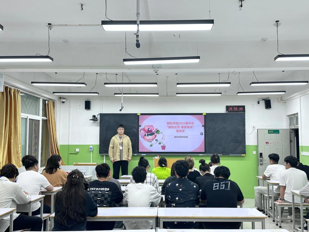 为增强贷款毕业生诚信意识,确保贷款毕业生毕业确认工作顺利进行。6月2日,beats365唯一官网院领导助理团在教学楼开展2023届毕业生诚信还贷宣讲会,助理团新闻部部长朱恒江担任主讲。