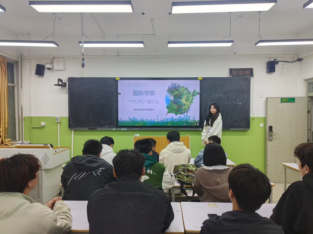 活动伊始,主持人带领同学们深刻了解水资源的重要性,随后,讲述了设立“世界水日”的意义就是唤醒大家节约用水、保护环境的意识,只有意识到了节约水资源的重要性才会自觉地节约用水,并且纠正同学们对水源的认知,提升同学们珍惜水源的意识,同时呼吁大家不浪费一滴水,节约用水从小事做起。如今,科技发展,时代进步,但水资源浪费、污染以及不合理使用等现象却愈发严重,全球性水危机已为人类敲响警钟。台下同学认真倾听宣讲内容,逐渐深入了解我们仍旧面临水资源危机,认识到节约用水、保护水资源的重要性。最后,主持人总结:“节约用水造福人类,利在后代功在千秋”。养成节水习惯是一个潜移默化的过程,希望同学们从自我做起,从点滴做起。