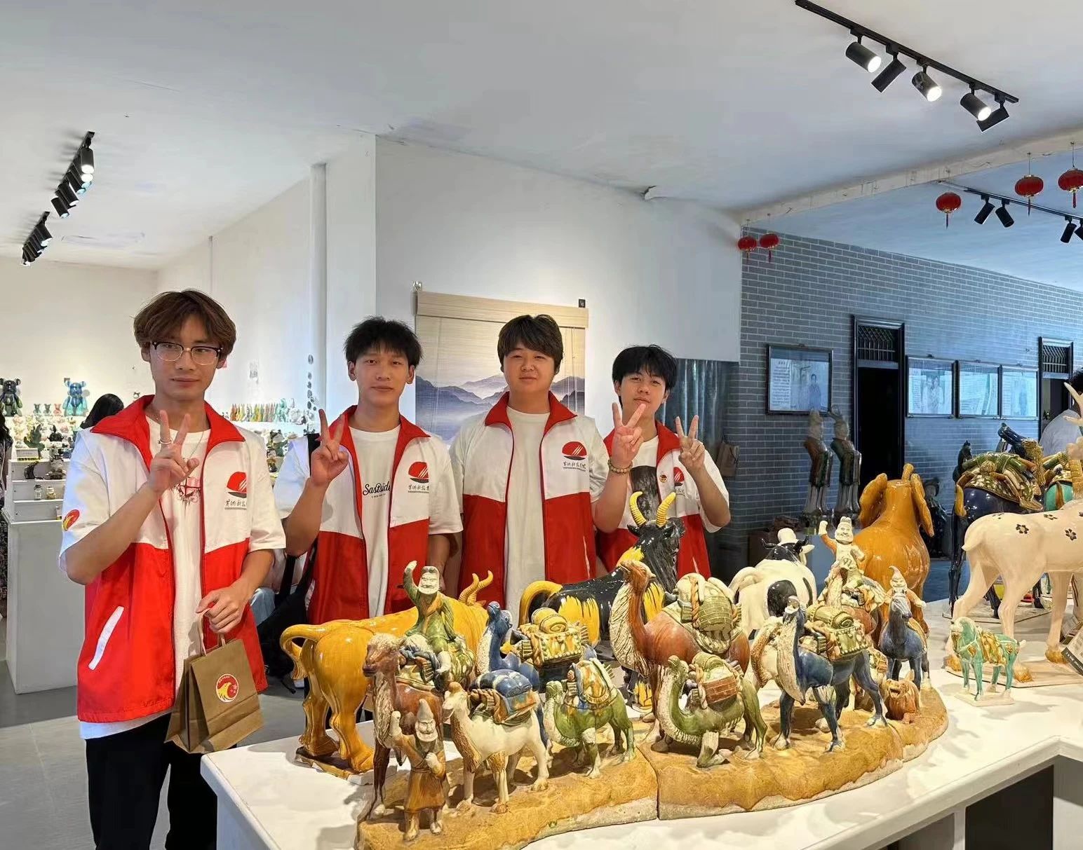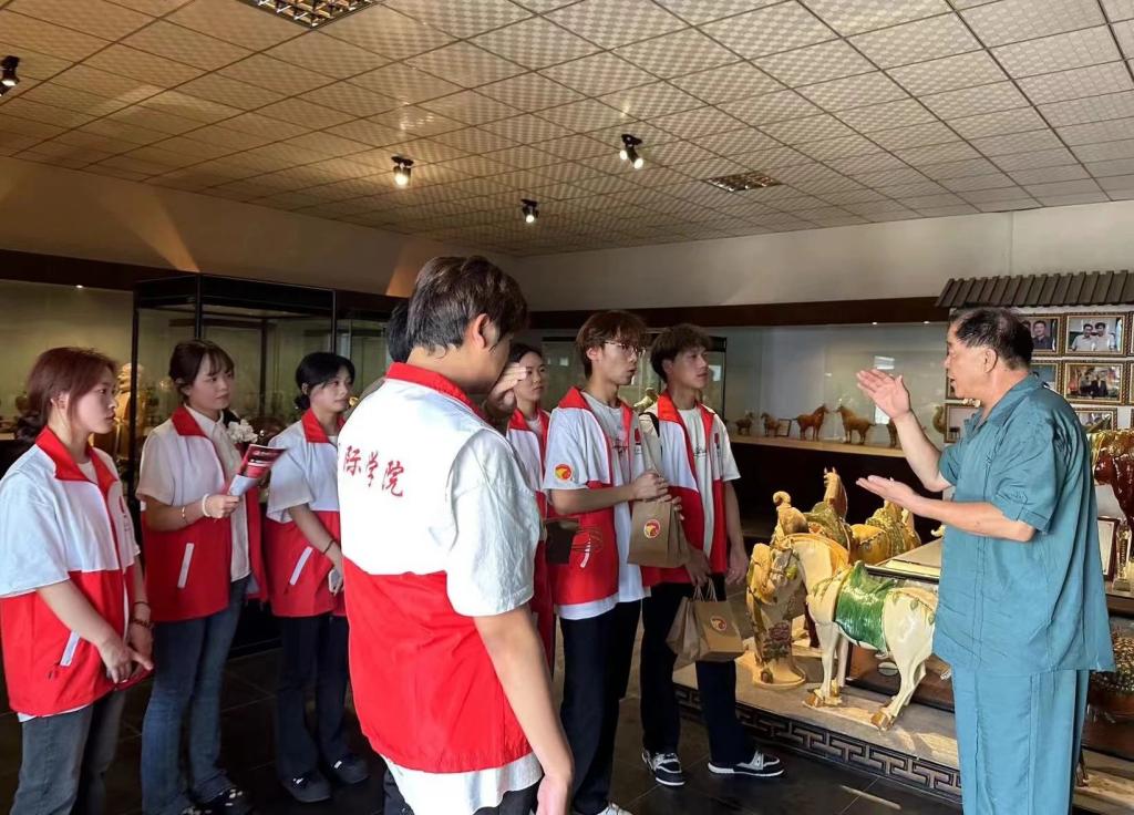 跟随他们的步伐,进入由国家级非物质文化遗产唐三彩烧制技艺代表性传承人高水旺大师创办的“唐三彩博物馆”。馆中的一面面墙壁上,陈列着属于唐代陶器的“丰功伟绩”,这不仅是对古老技艺的认可和传承,更是对习近平总书记非遗文化传承讲话的高度回应。随后,实践队员们走进博物馆深处,来到了唐三彩生产车间工艺线,一步步见证了唐三彩从拉泥坯、描彩绘、上釉色到入窑烧制,每一个细节都充满了匠人的心血和智慧。