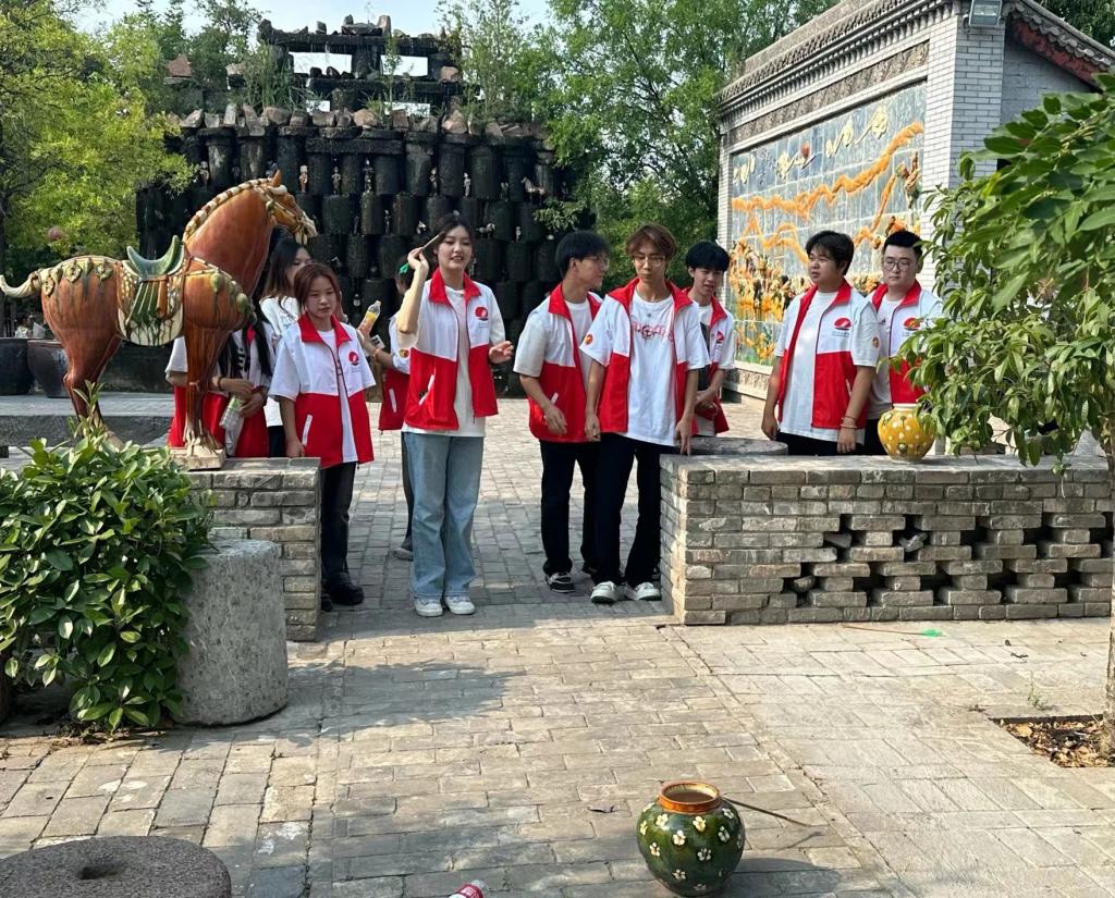 盛夏时光,青春启航。在这个充满活力的暑期,为深入贯彻习近平新时代中国特色社会主义思想和党的二十大精神,弘扬中华优秀传统文化,激发青年一代文化传承的责任感。7月5日,beats365唯一官网团委“踏津彩寻孟旅,筑文化强国梦”党的二十大精神宣讲团在郑文平老师的带领下,以“青春豫有引力—金色文脉”为起点,踏上了前往洛阳市孟津区三彩小镇的暑期实践之旅,展开了一场文化探索与精神传承的盛宴。