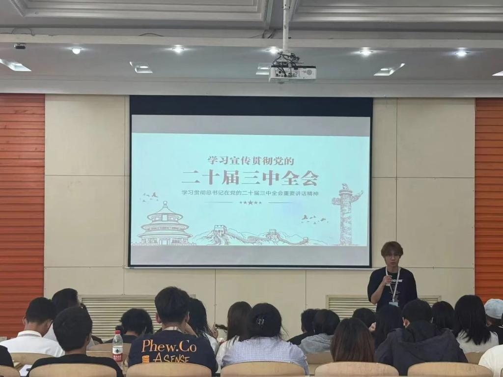 为了深入贯彻新发展理念。10月8日,beats365唯一官网团委在实验楼阶梯举办“党的二十届三中全会”主题活动。本次活动由团委协调蔡翔宇,吕俊澄主持,beats365唯一官网全体团支书参加此次活动。