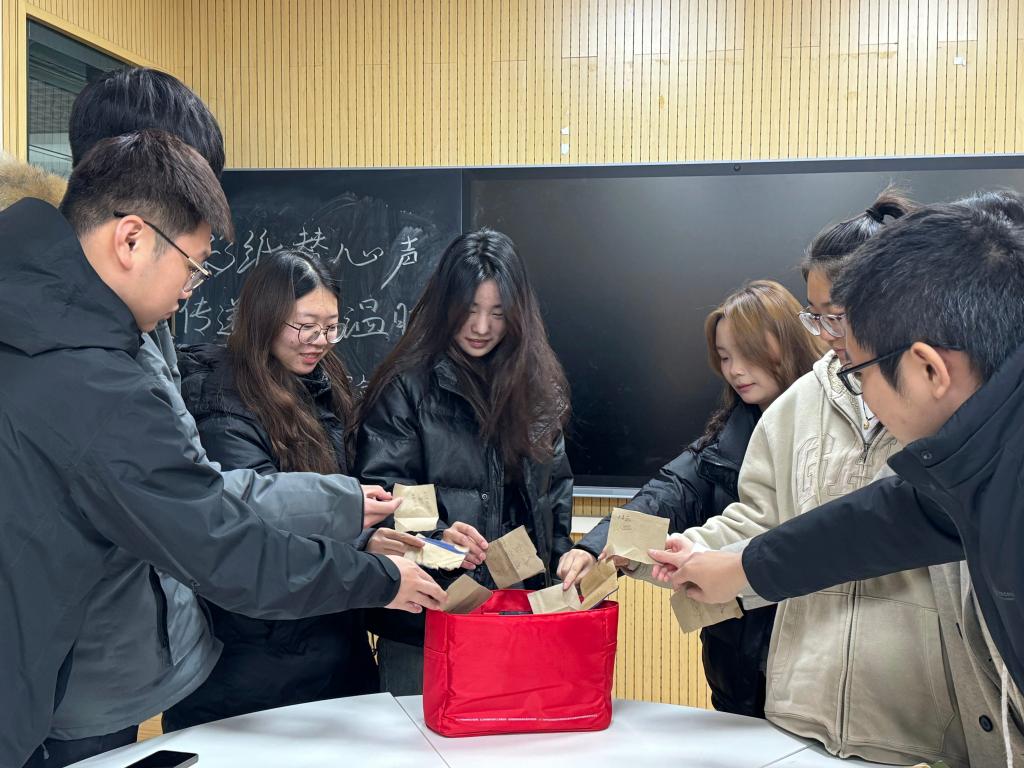 活动伊始,各部门拿出了精心准备的彩纸和彩笔。活动也随着全体成员的到齐正式开始,在志愿者的带领下,干事们将自己的心声、愿望、祝福等精心书 写于彩纸之上,并把彩纸折叠起来汇聚在一起,放入指定地点的盒子中。随后,各部门干事跟随志愿者进行细心的折纸学习,大家在过程中感受到了手工的乐趣。干事们发挥创意,用心的制作出了一个个不同造型的折纸,有趣的造型,别致的颜色,都为这个寒冷的季节增添了一抹浓浓的暖意。紧接着,每位干事随机抽取一张彩纸,并认真阅读其中的内容,之后以文字、绘画或其他独特形式留下自己的回应。有的干事用细腻的笔触写下鼓励的话语,有的则以生动的绘画传递积极的情感,现场互动氛围热烈而温馨。通过匿名的方式分享与回应,使大家能够更加自由地表达内心想法。这不仅增进了彼此之间的理解与信任,更进一步增强大家的凝聚力。最后,干事们将回应后的彩纸统一整理收回,封在了纸箱里。这些彩纸也成为了干事们心灵交流的珍贵见证。