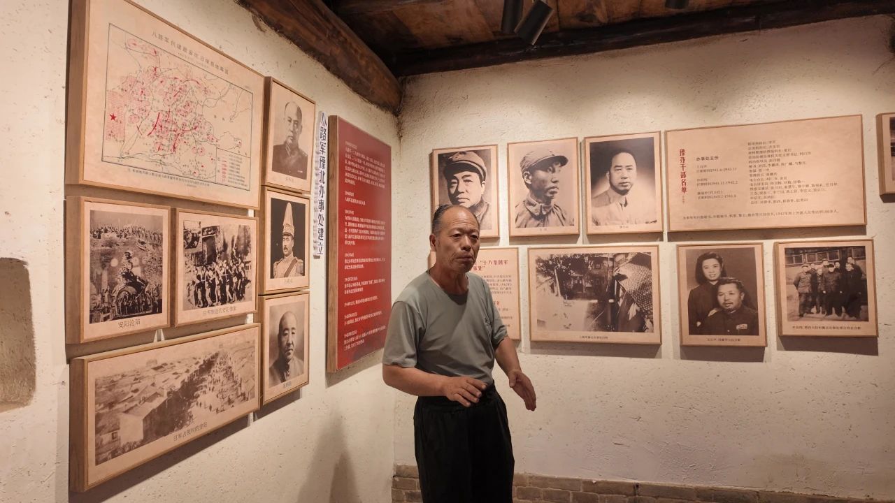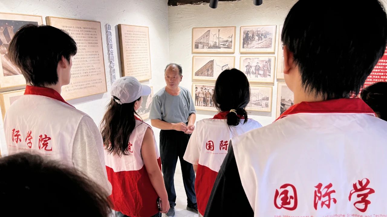 西坡村是重要的革命根据地之一,无数革命先辈曾在此留下英勇无畏的战斗足迹。活动首日,实践团成员走进林北县抗日纪念馆。展厅内,一件件珍贵的历史文物静静陈列着:布满岁月痕迹的手榴弹、刻满战斗印记的军刀等抗战武器,无声诉说着往昔的烽火岁月,引得参观者久久驻足。大家认真了解这些武器的使用方法,聆听背后的战斗故事,并在留言簿上郑重写下自己的名字,以这种方式表达对革命先烈的深切敬仰。随后,实践团来到八路军豫北办事处。红三代张伏生先生热情地为大家讲解此处的建立背景、重要作用,以及抗战时期这里开展地下交通、情报传递、物资转运等工作的故事。他感慨道,这些武器不仅承载着厚重的历史,更凝聚着先辈们保家卫国的坚定信念,点燃了新时代传承革命精神、奋进新征程的火炬。在张伏生先生的讲述中,革命先辈的形象变得鲜活立体,每一段故事都彰显着先辈们的智慧与担当。最后,实践团抵达八路军一二九师磁武涉林反顽战役作战指挥部旧址。作战地图、古朴的房屋建筑、泛黄的会议记录等珍贵资料,重现了一二九师运筹帷幄、指挥若定的历史场景。成员们深入了解这场战役对巩固抗日根据地、维护抗日民族统一战线的重要意义,深刻感悟到革命先辈在复杂局势下坚持原则、灵活斗争的政治智慧。