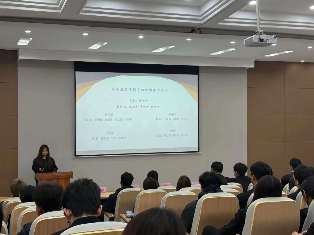 新一届各个部门的部长代表上台进行就职演讲,他们对自己提出了要求,也对院领导助理团这个大家庭寄予了厚望!