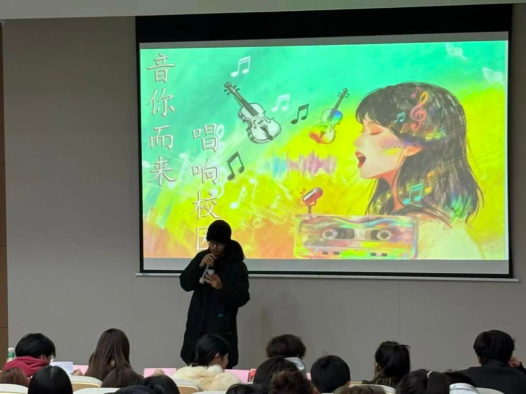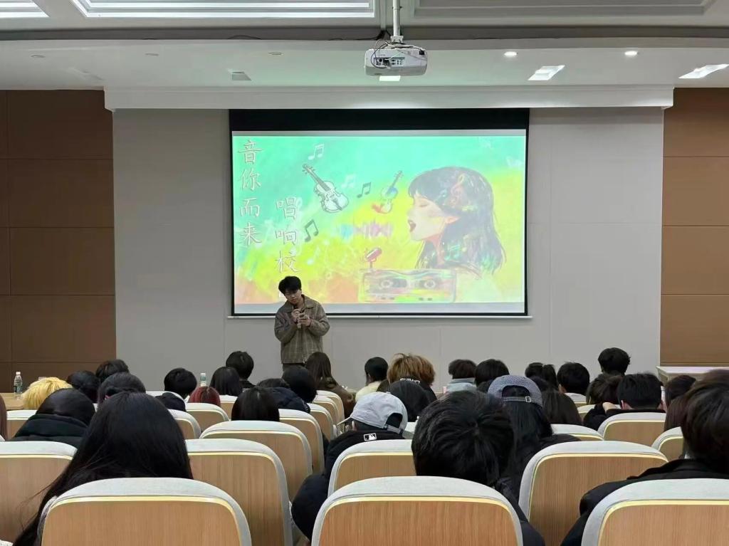 随后,比赛在热烈的氛围中正式拉开帷幕。参赛选手依次登台,尽展歌喉。赵浩凯、张钧博、刘炫等25级新生踊跃参与,或深情演绎,或活力四射,演唱曲目涵盖流行、民谣、摇滚等多种风格,不断将现场气氛推向高潮。台下观众挥舞荧光棒,掌声、呐喊声不绝于耳,阶梯教室化作一片跃动的音乐海洋。