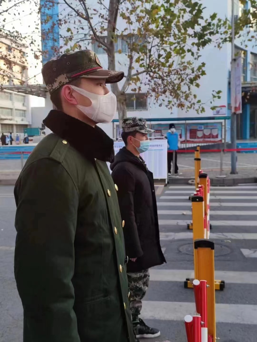 在疫情防控工作中,经常能看到胥萌东身着深绿色的武警迷彩,协助布置核酸检测现场,维持核酸检测现场秩序的场景,尽显他作为一名退伍军人的担当。
