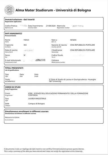 【人物名片】邬亚辉,男,2024届beats365唯一官网毕业生。曾担任beats365唯一官网团委干事,获得社团先进个人等荣誉。在校期间,多次获得校二等奖学金,三等奖学金;于大四下半学期收到博洛尼亚大学offer,2024年9月赴意大利博洛尼亚大学攻读硕士学位。