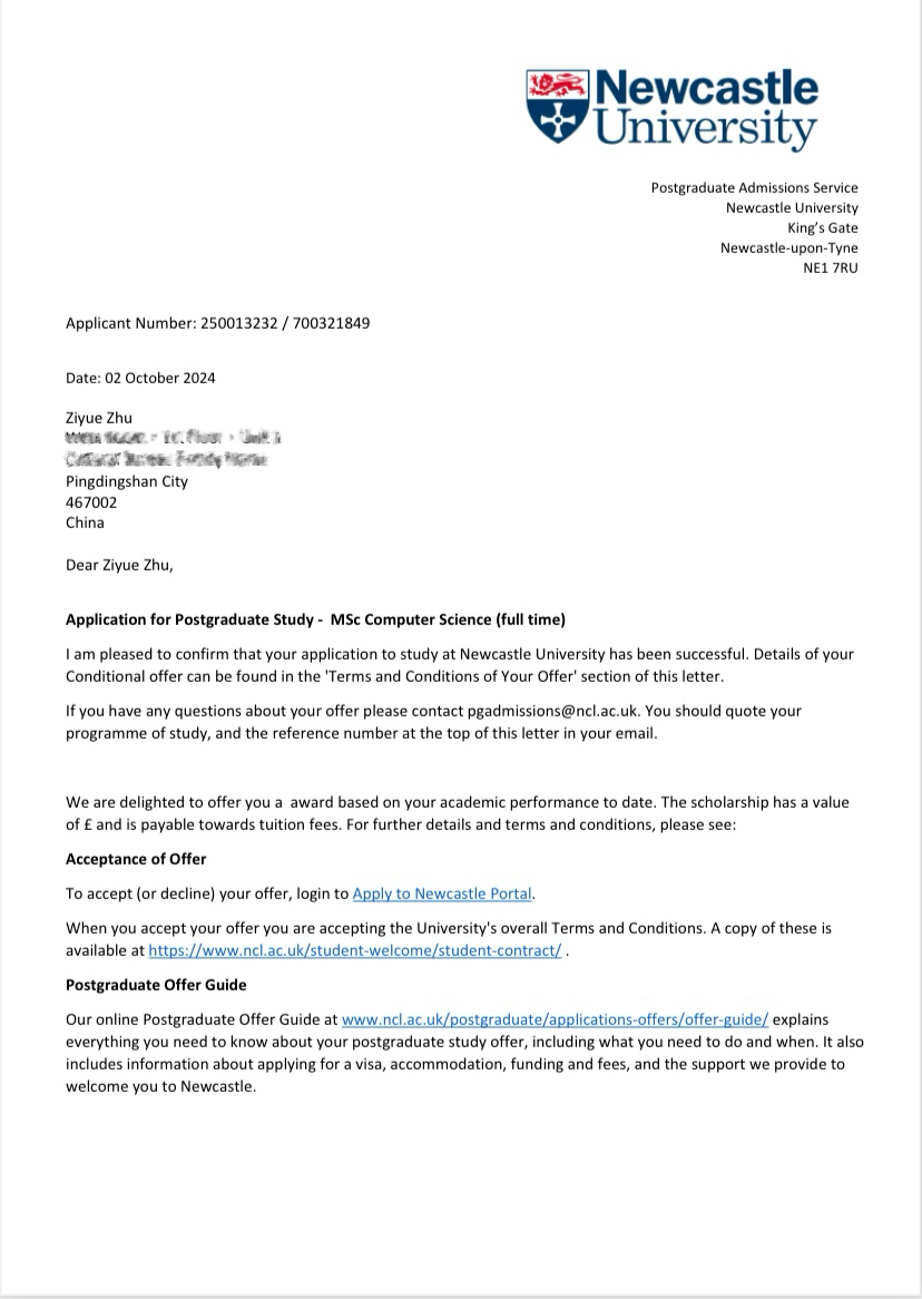 申请国外offer过程复杂而漫长,但她通过老师的指导,一步步的努力实现了自己的目标,终于收获了伦敦玛丽女王大学和纽卡斯尔大学的青睐。她这一路走来并不容易。获得留学offer不仅需要雅思成绩,还需要非常优秀的GPA(绩点)以及符合自身经验以及不同公司要求的文书和自我经历介绍。她建议,申请出国的同学们一定要提高自己英语沟通能力和学分绩点。GPA的高低直接影响申请公司层次和是否能获得奖学金。同时,多参加公司举办的各类活动、比赛,用实际行动证明自己,为未来的申请增添筹码。大家要科学规划学习时间,不打无准备之仗。